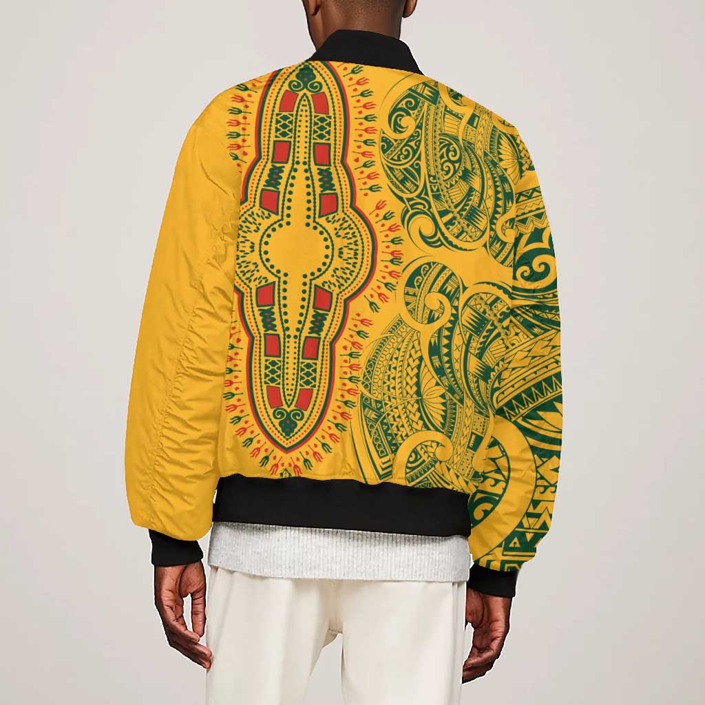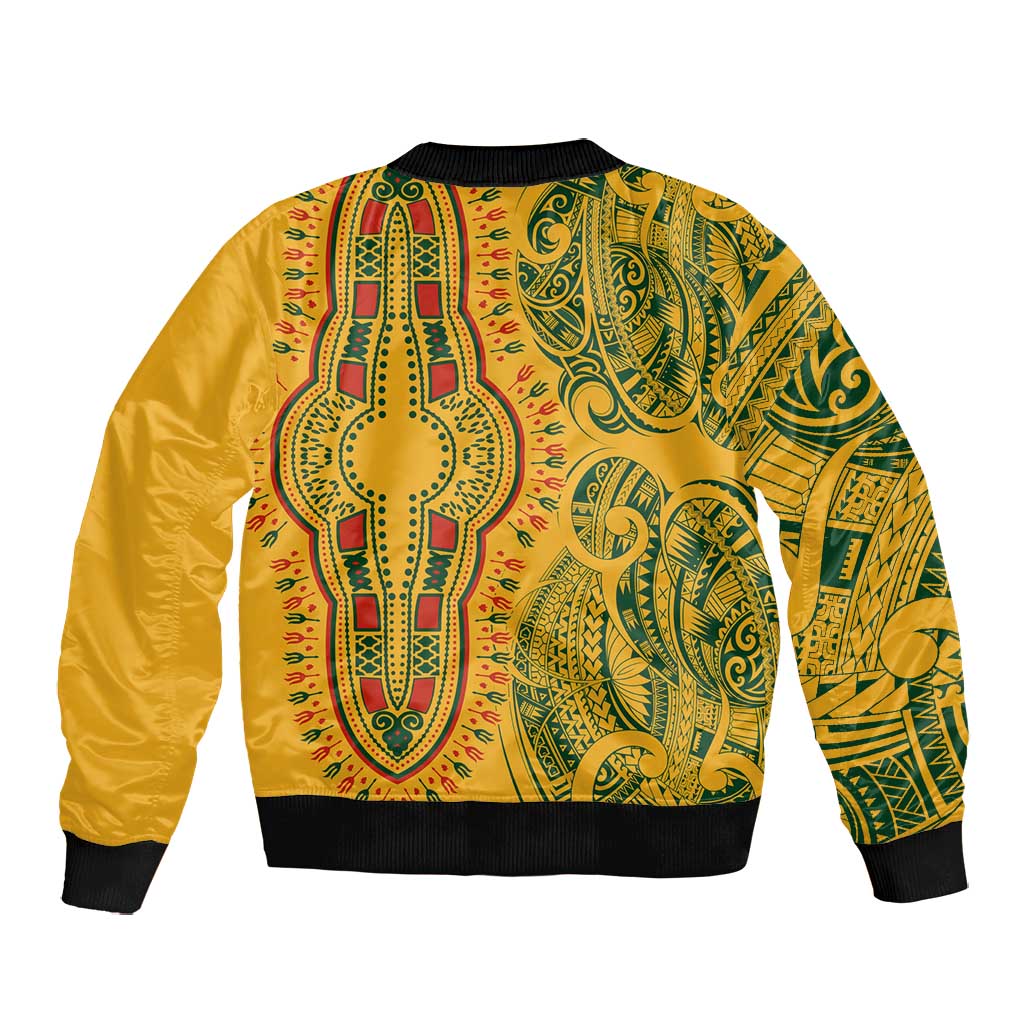 Dashiki and Polynesian Pattern Bomber Jacket Afro Pacific Culture Gold Version
