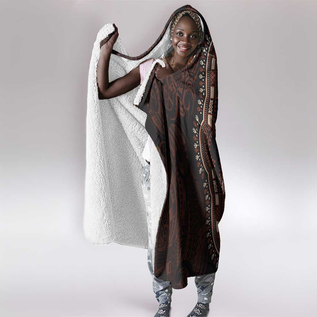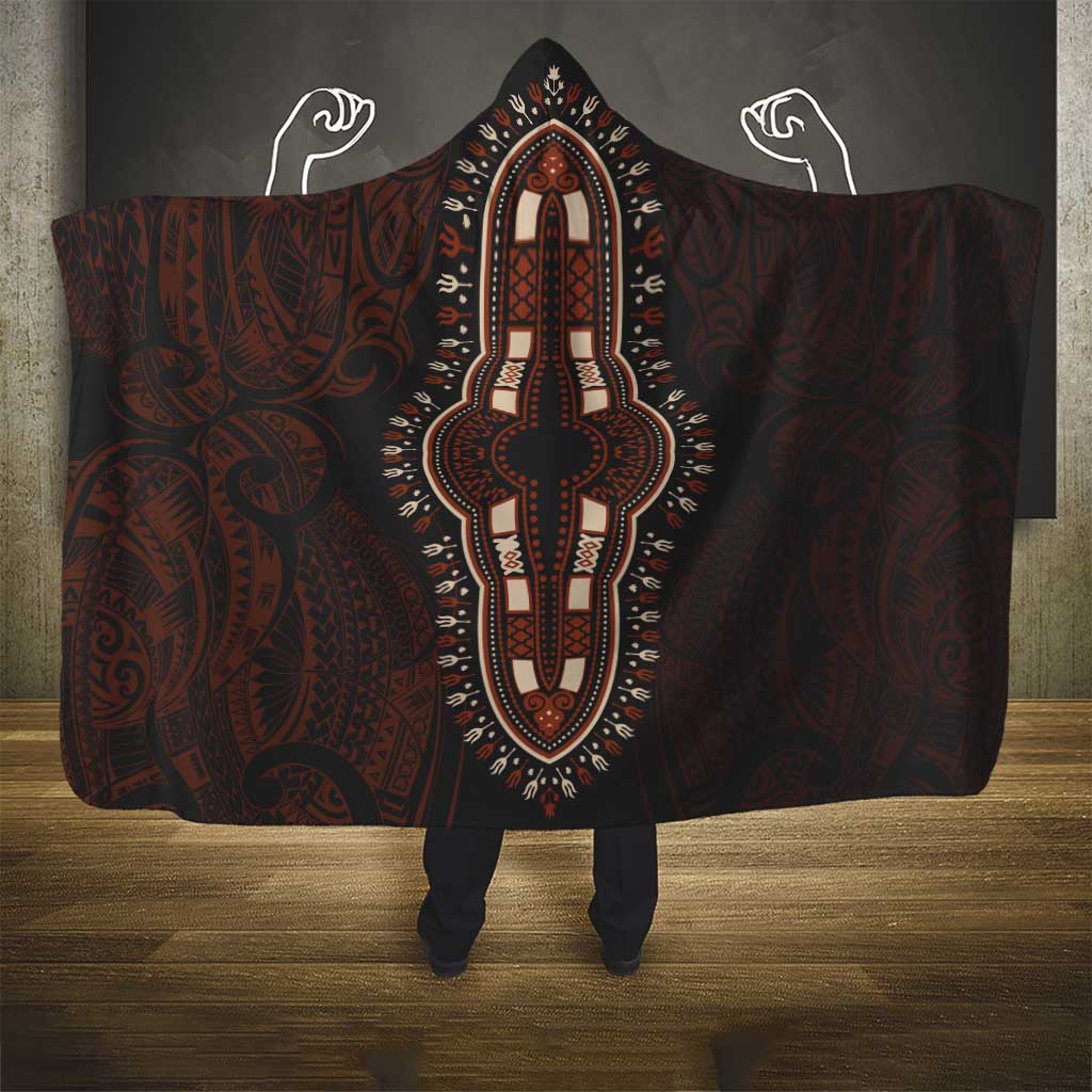 Dashiki and Polynesian Pattern Hooded Blanket Afro Pacific Culture Red Version
