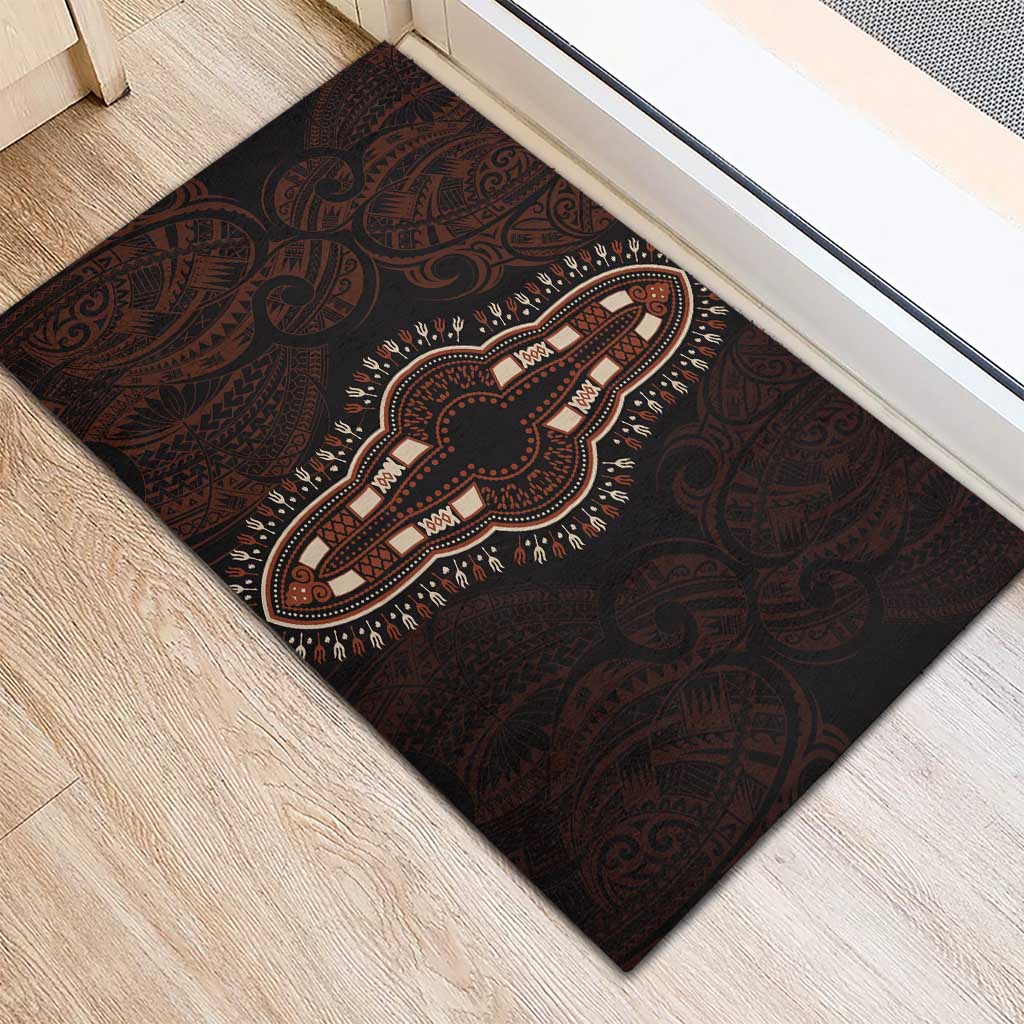Dashiki and Polynesian Pattern Rubber Doormat Afro Pacific Culture Red Version