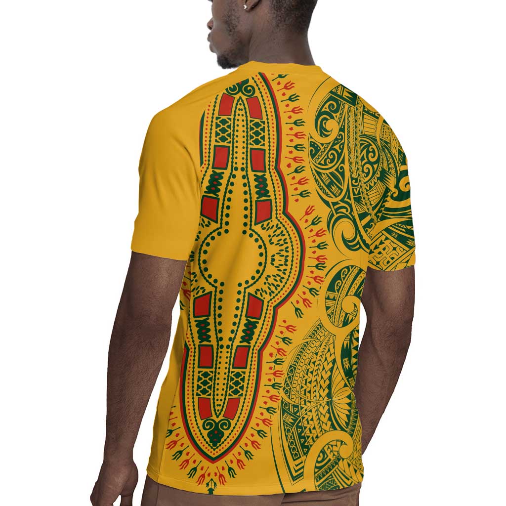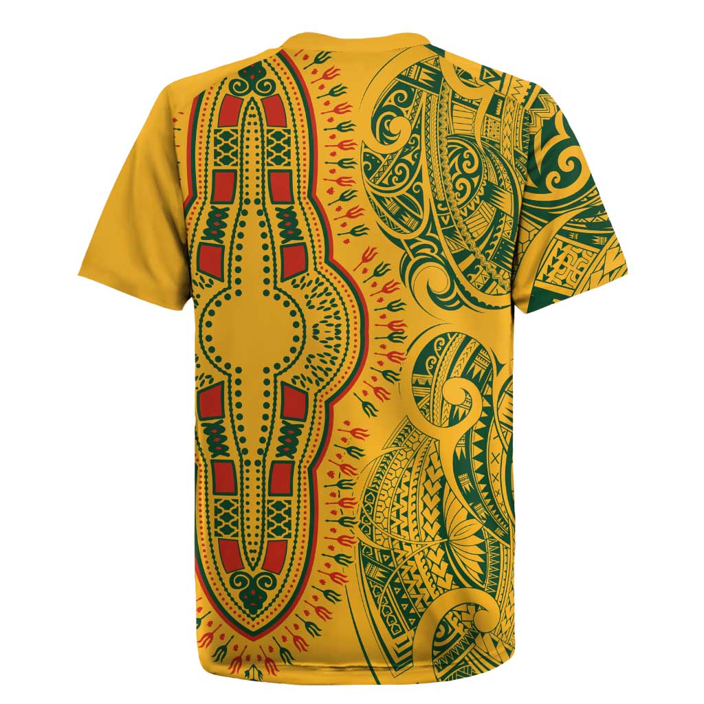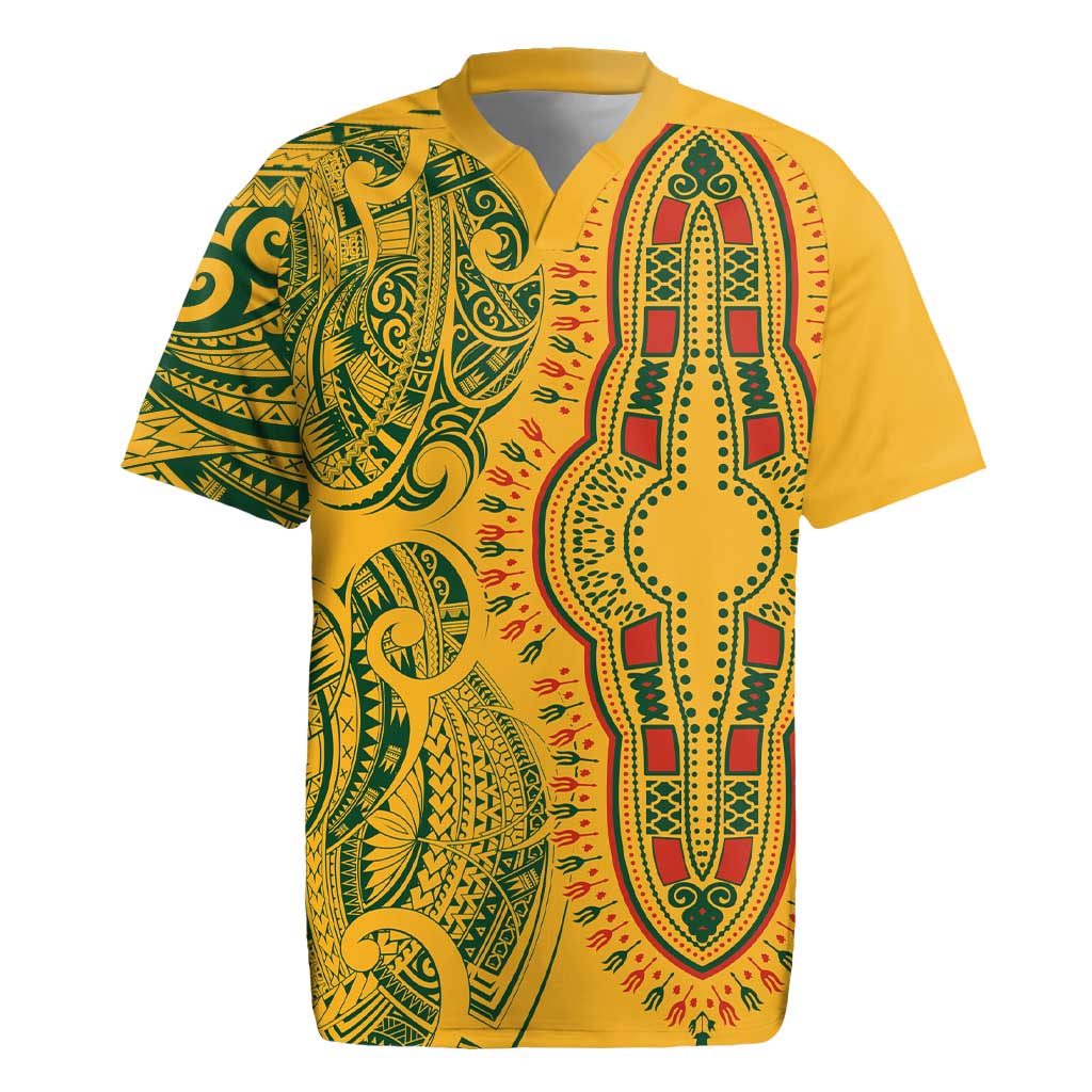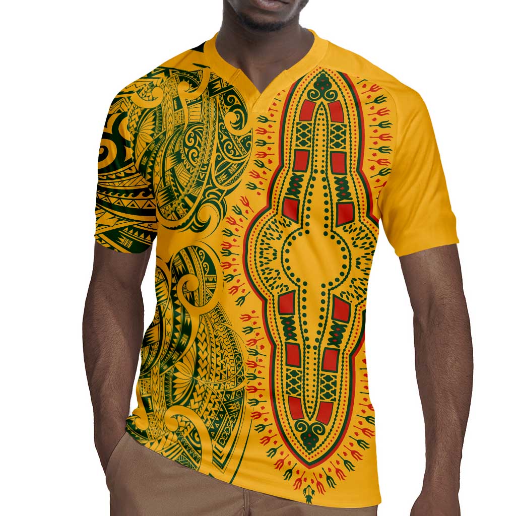 Dashiki and Polynesian Pattern Rugby Jersey Afro Pacific Culture Gold Version