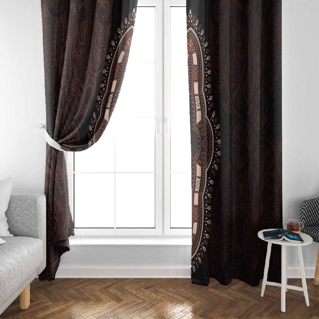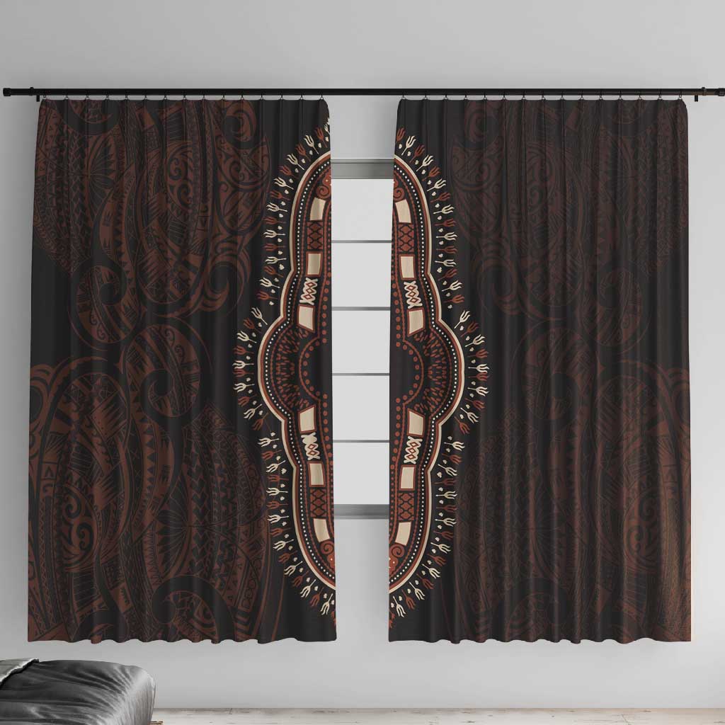 Dashiki and Polynesian Pattern Window Curtain Afro Pacific Culture Red Version