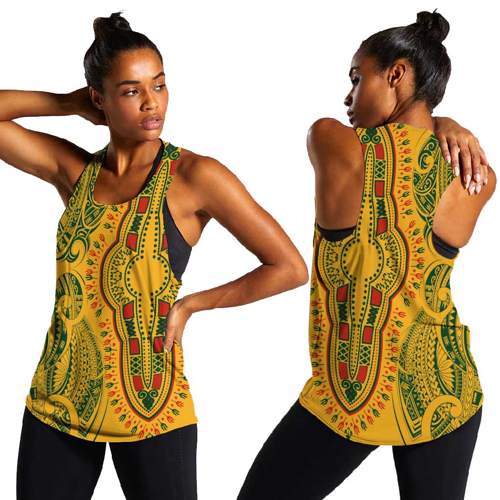 Dashiki and Polynesian Pattern Women Racerback Tank Afro Pacific Culture Gold Version LT9