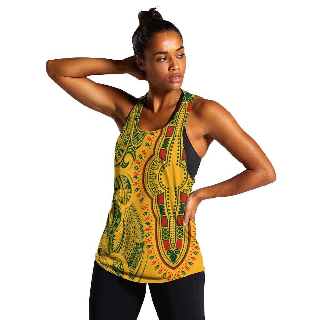 Dashiki and Polynesian Pattern Women Racerback Tank Afro Pacific Culture Gold Version
