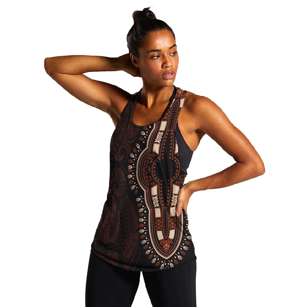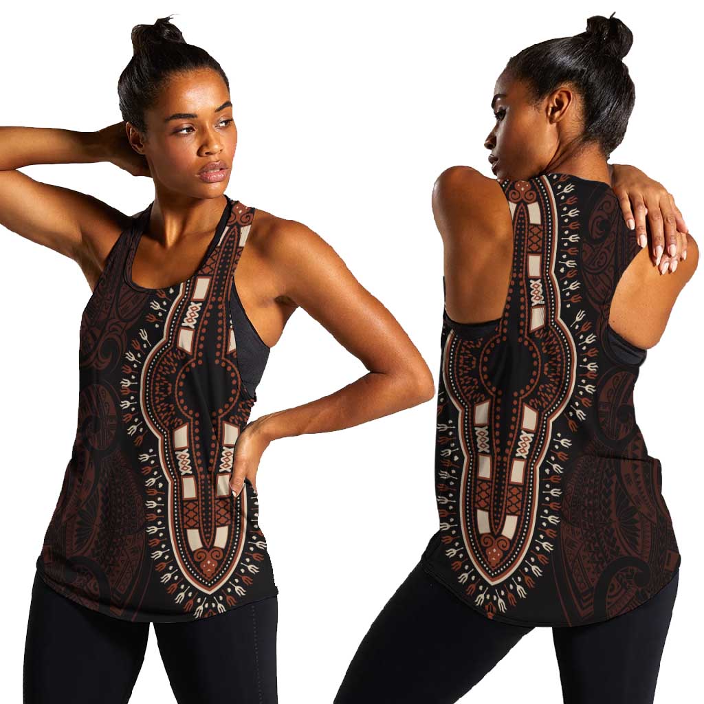 Dashiki and Polynesian Pattern Women Racerback Tank Afro Pacific Culture Red Version