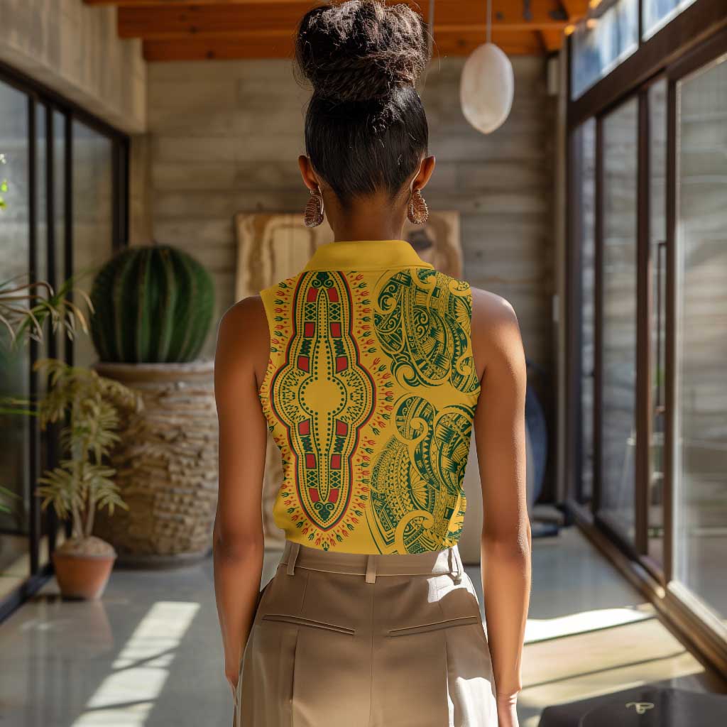 Dashiki and Polynesian Pattern Women Sleeveless Polo Shirt Afro Pacific Culture Gold Version