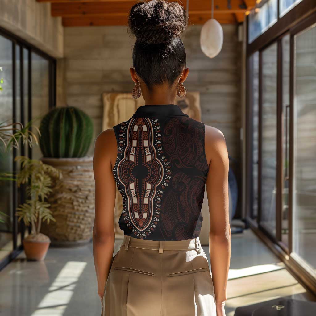 Dashiki and Polynesian Pattern Women Sleeveless Polo Shirt Afro Pacific Culture Red Version