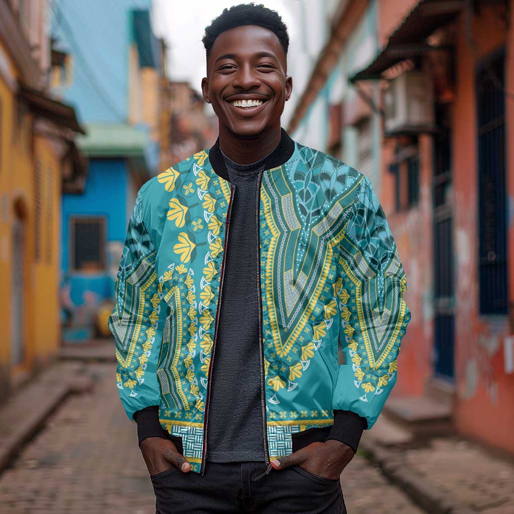 Dashiki Bomber Jacket Luxury Afro - Teal