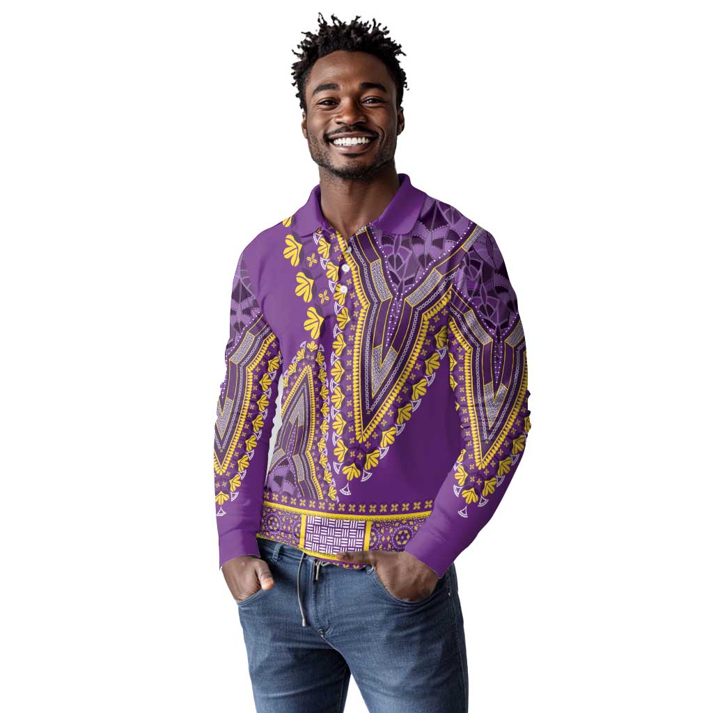 Dashiki Long Sleeve Polo Shirt Luxury Afro - Violet