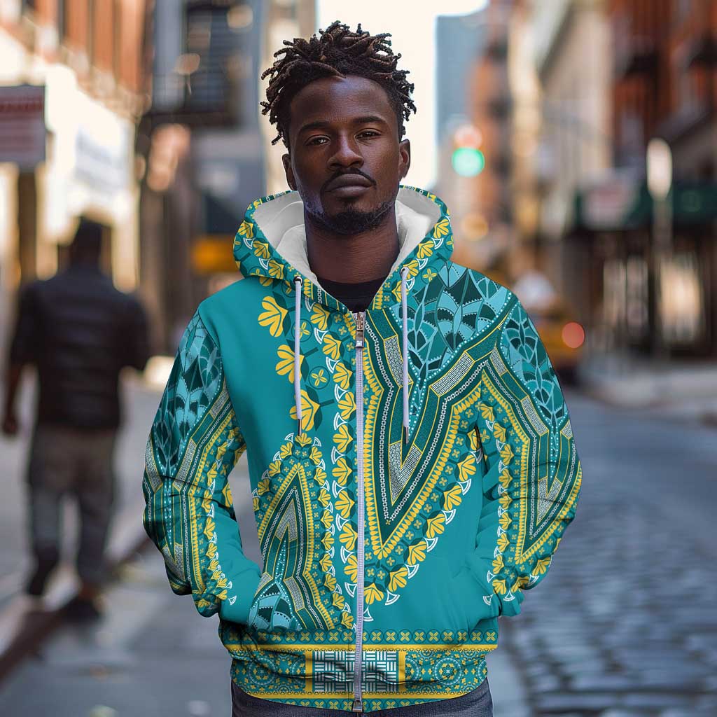 Dashiki Zip Hoodie Luxury Afro - Teal