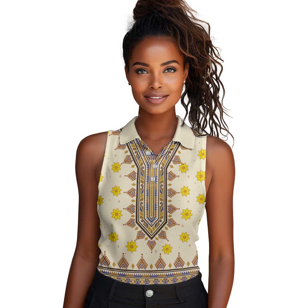Enkutatash Dashiki Adey Abeba Pattern Women Sleeveless Polo Shirt