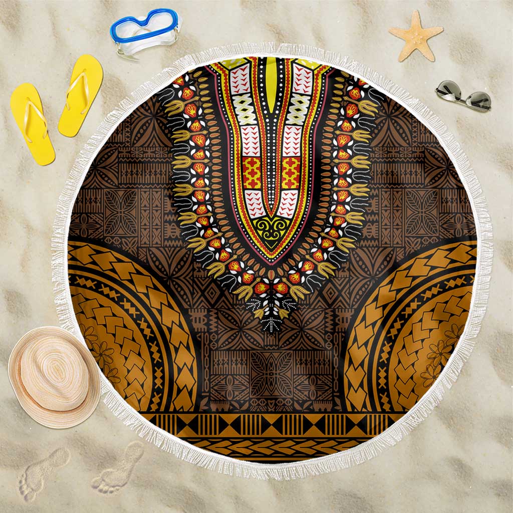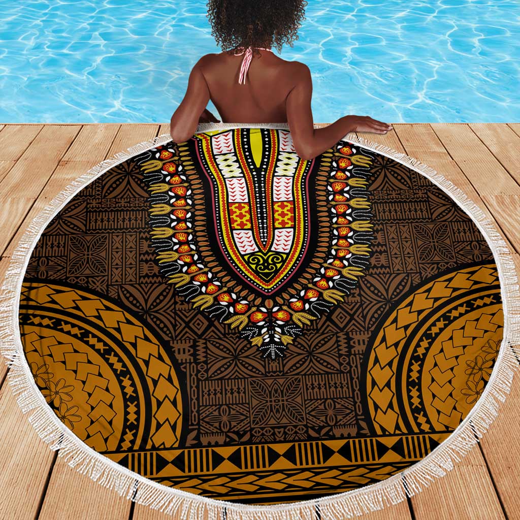 Gold Dashiki and Tapa Pattern Beach Blanket Africa-Polynesia Together Culture