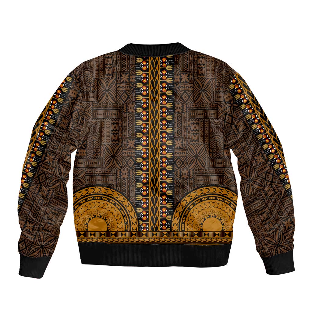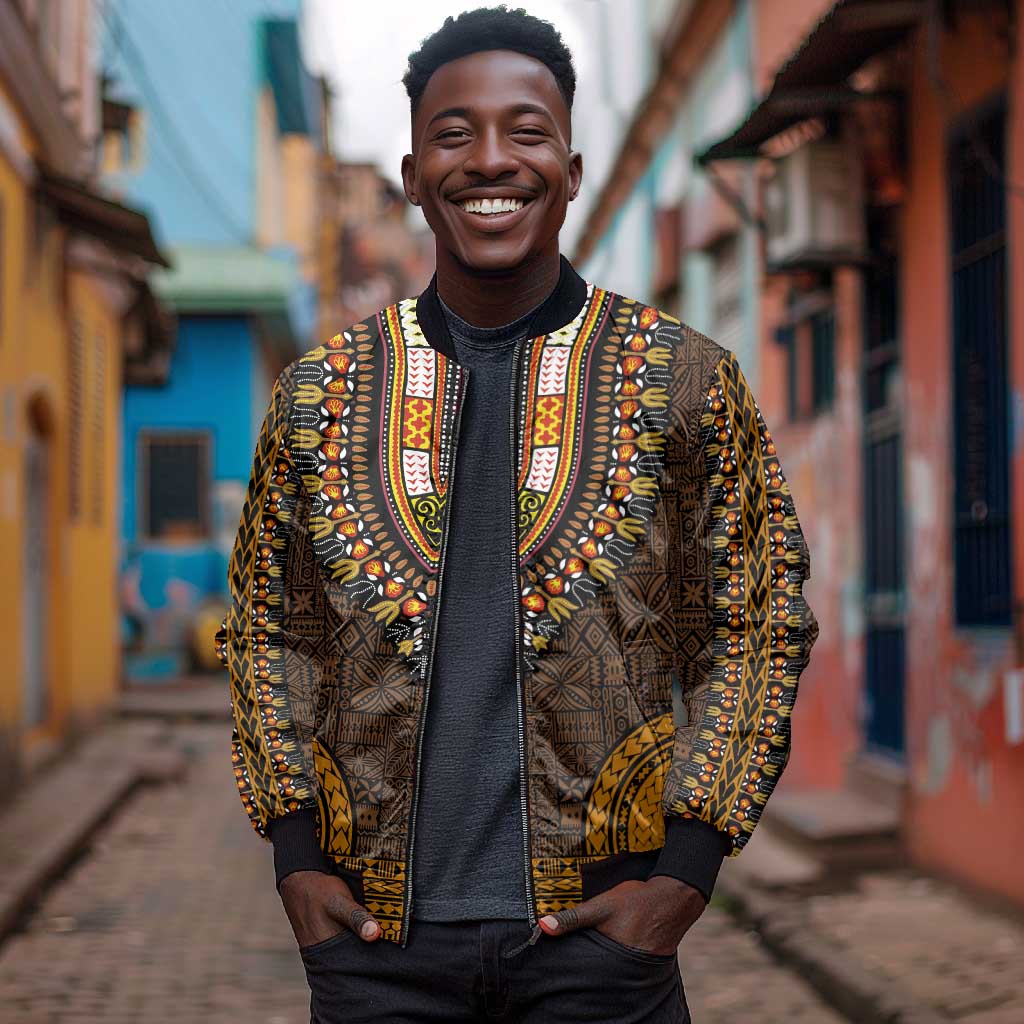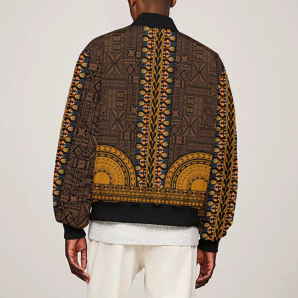 Gold Dashiki and Tapa Pattern Bomber Jacket Africa-Polynesia Together Culture