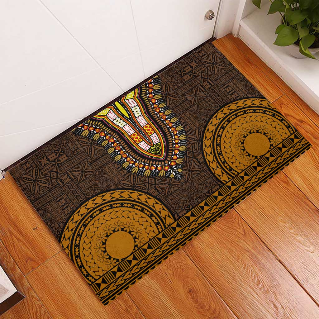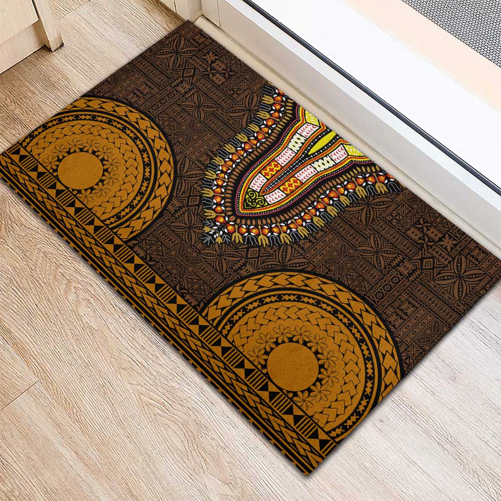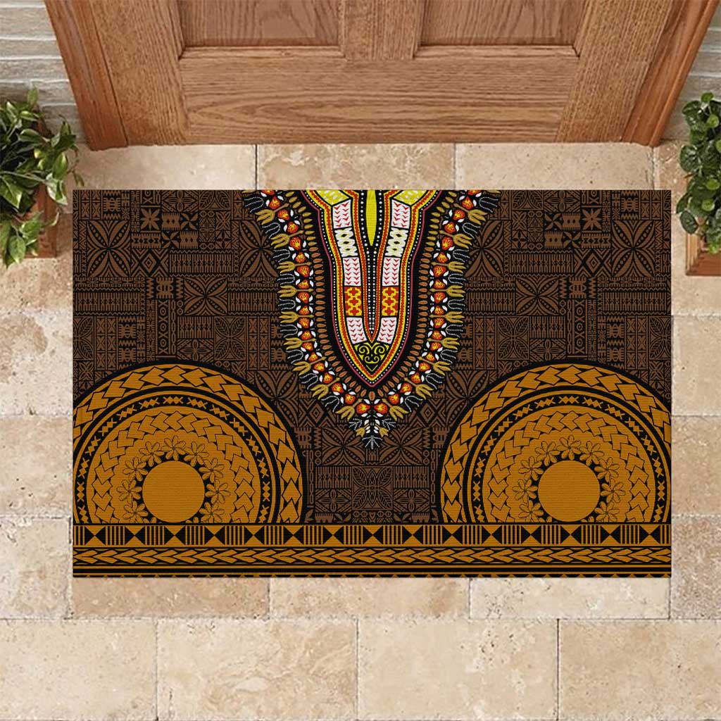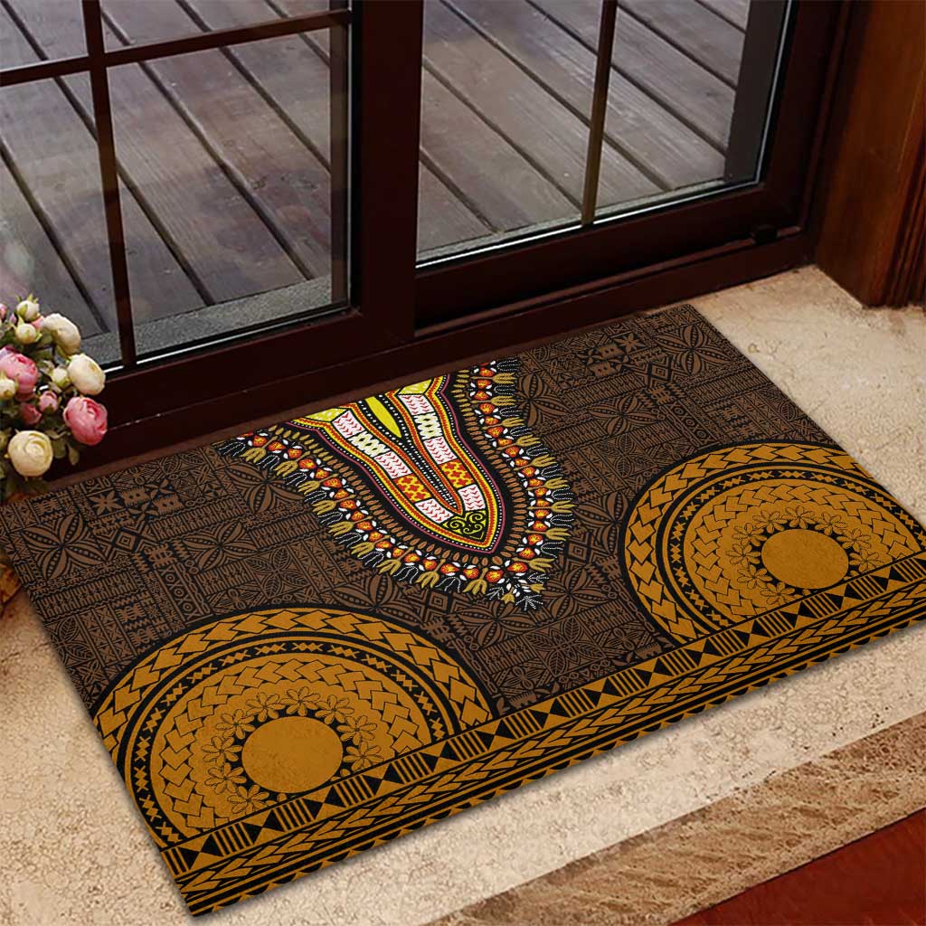 Gold Dashiki and Tapa Pattern Rubber Doormat Africa-Polynesia Together Culture