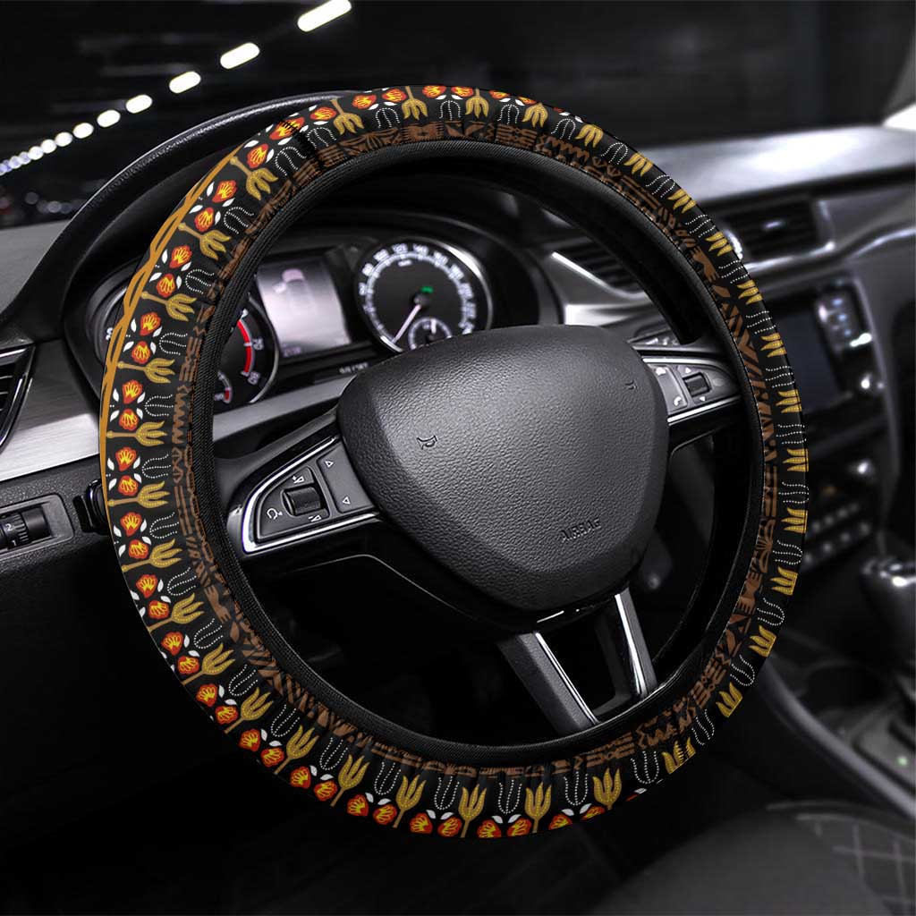 Gold Dashiki and Tapa Pattern Steering Wheel Cover Africa-Polynesia Together Culture
