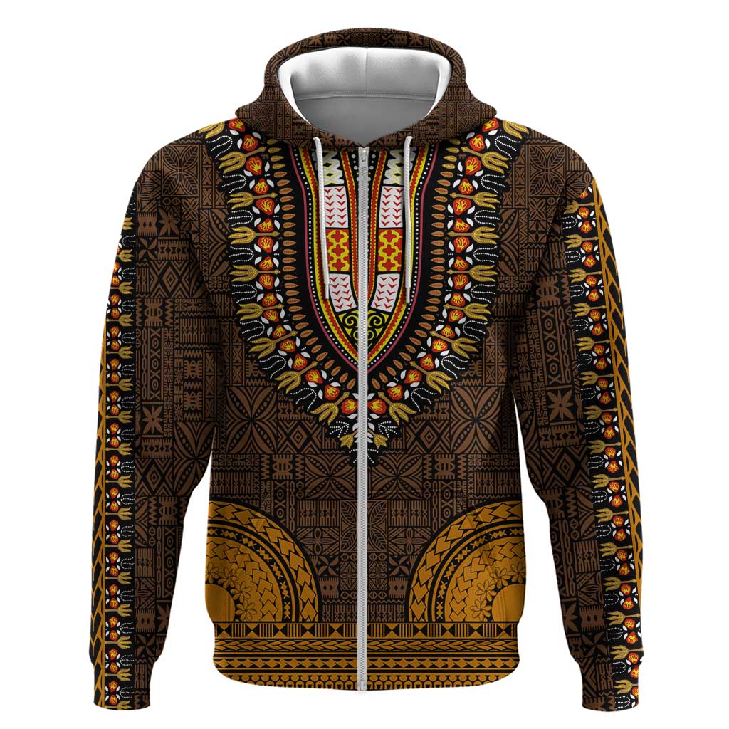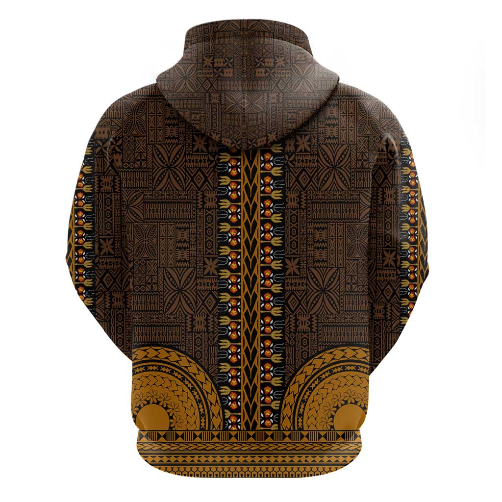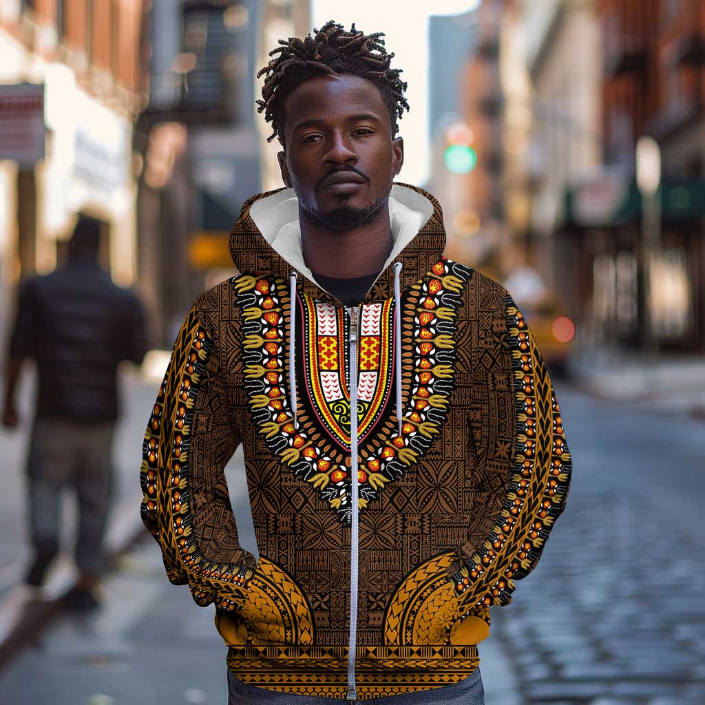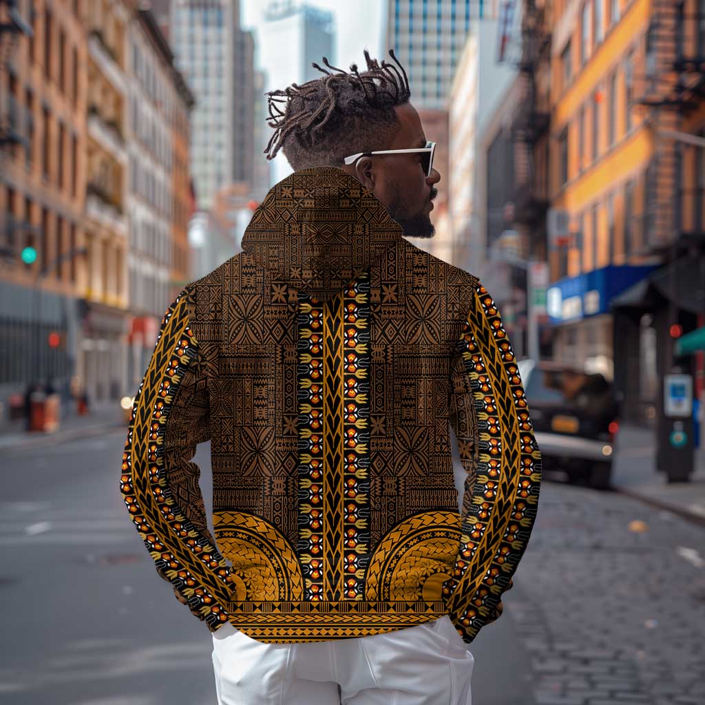 Gold Dashiki and Tapa Pattern Zip Hoodie Africa-Polynesia Together Culture
