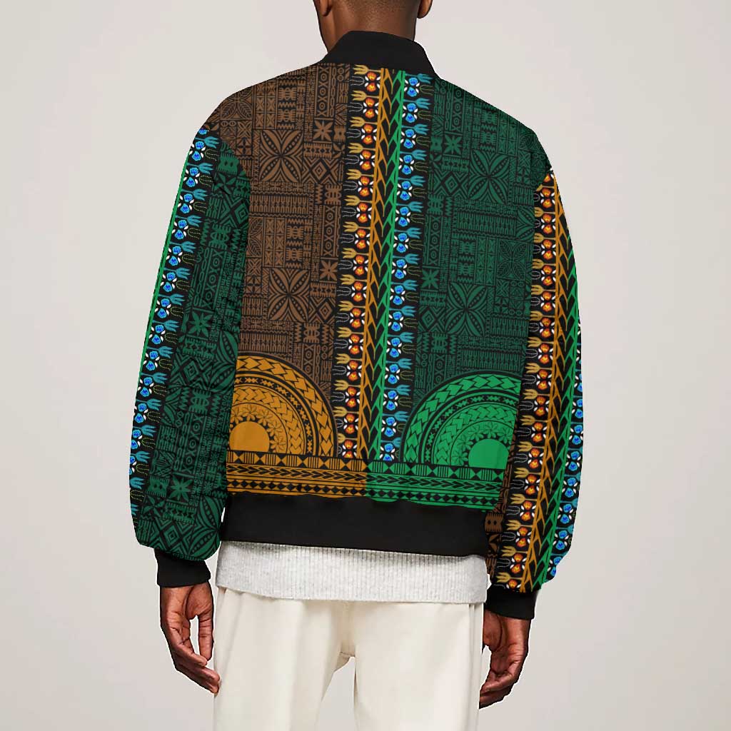 Green-gold Dashiki and Tapa Pattern Bomber Jacket Africa-Polynesia Together Culture