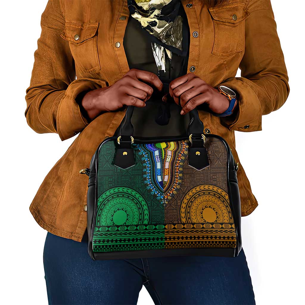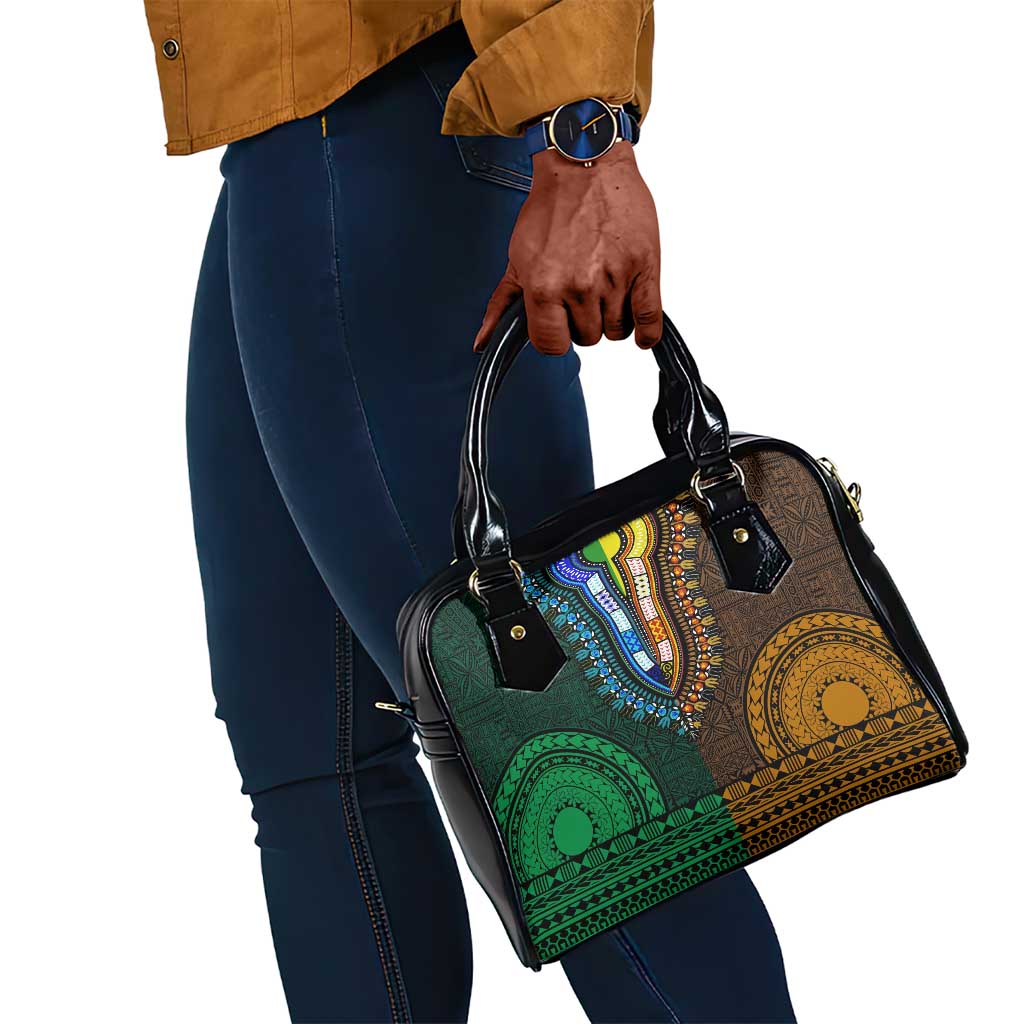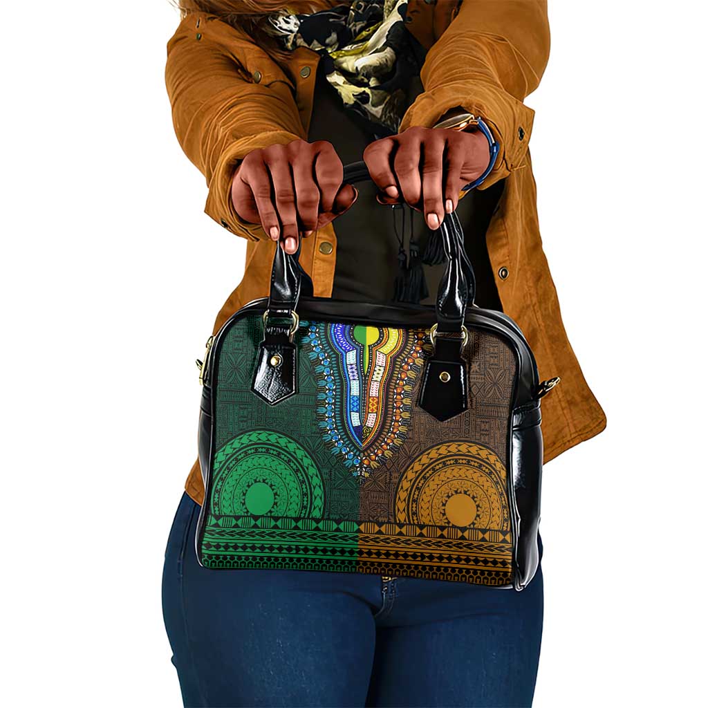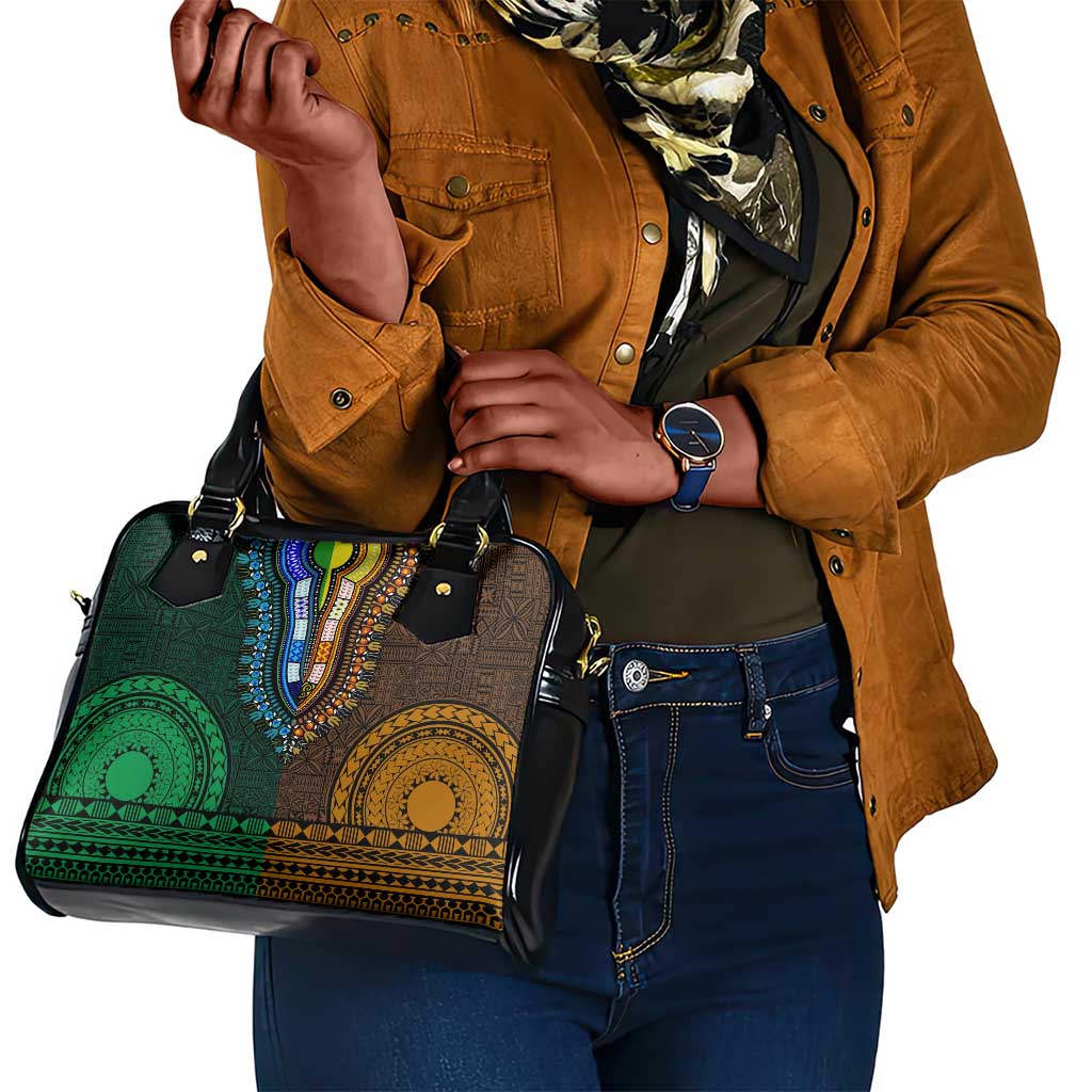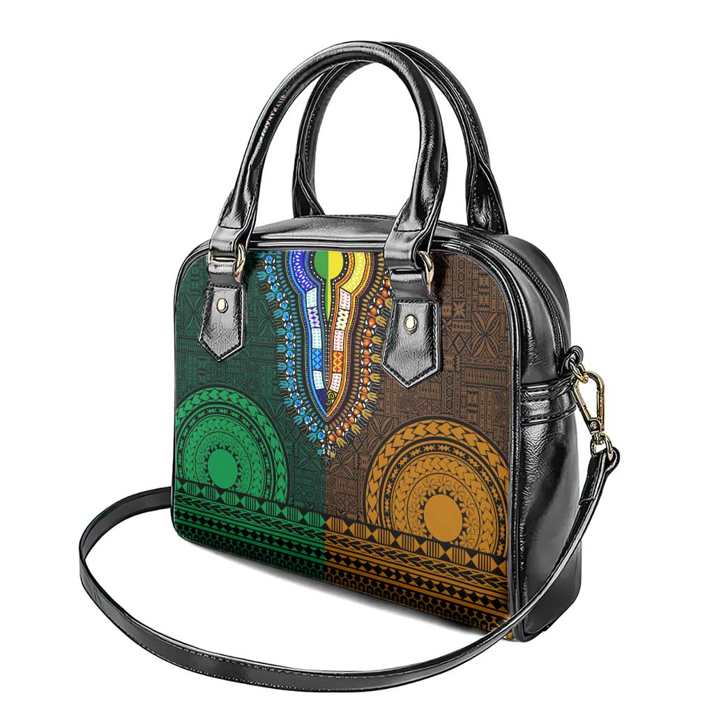 Green-gold Dashiki and Tapa Pattern Shoulder Handbag Africa-Polynesia Together Culture
