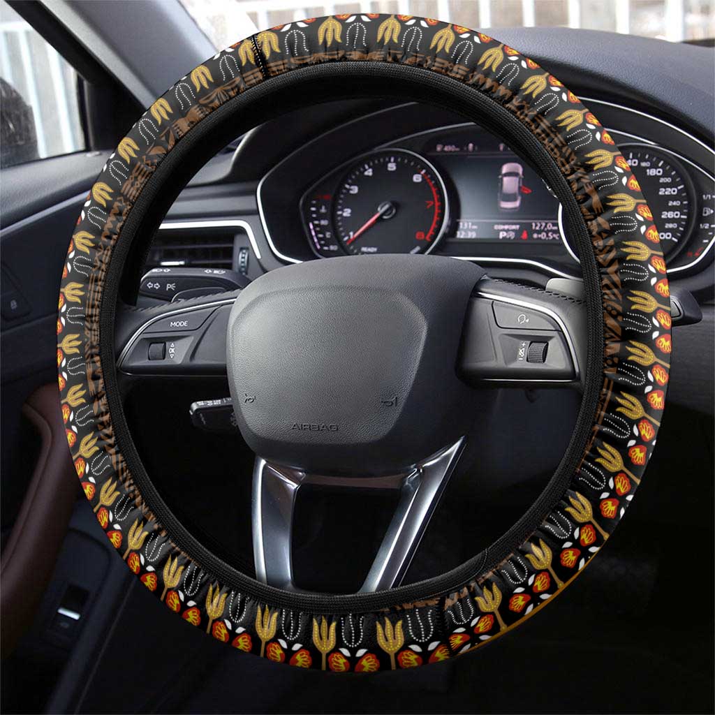 Green-gold Dashiki and Tapa Pattern Steering Wheel Cover Africa-Polynesia Together Culture