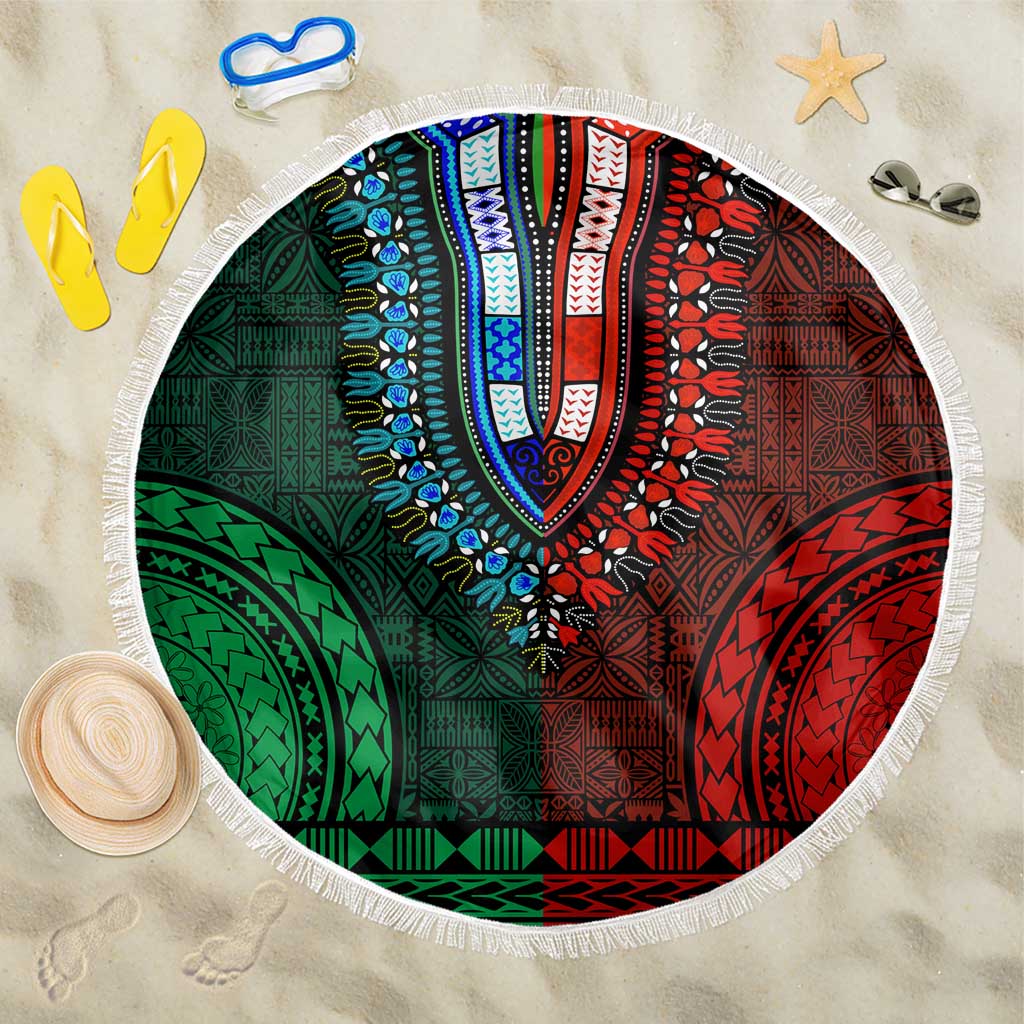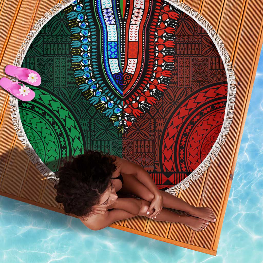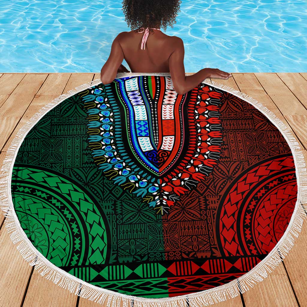 Green-red Dashiki and Tapa Pattern Beach Blanket Africa-Polynesia Together Culture