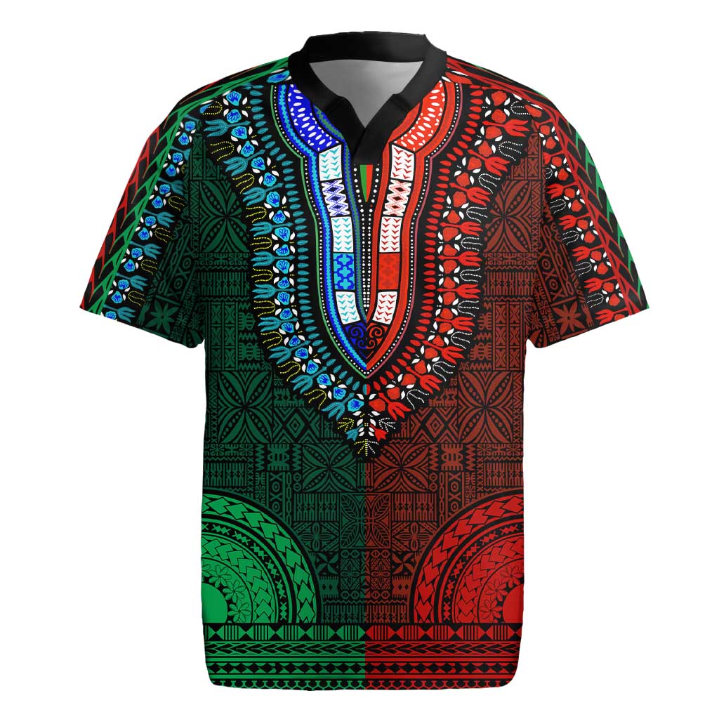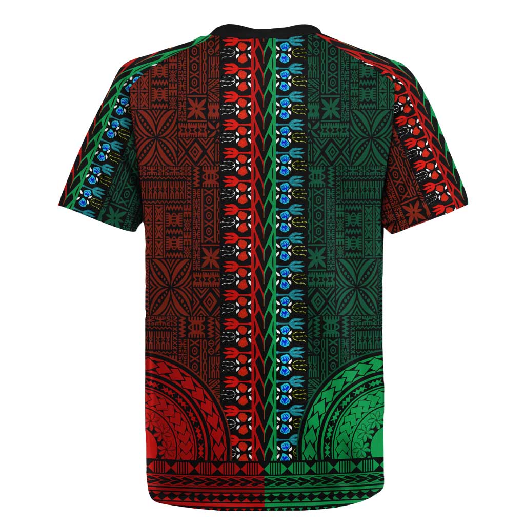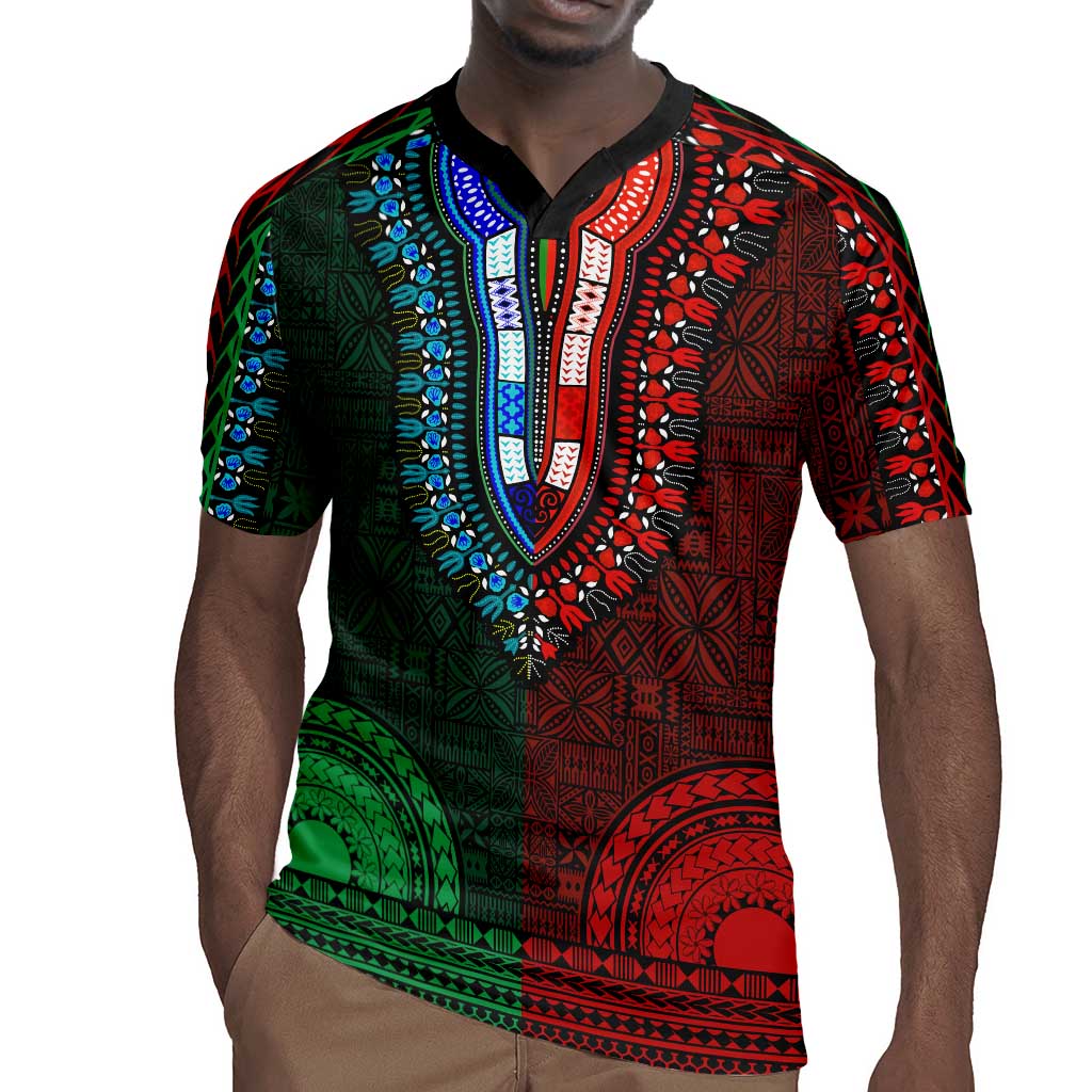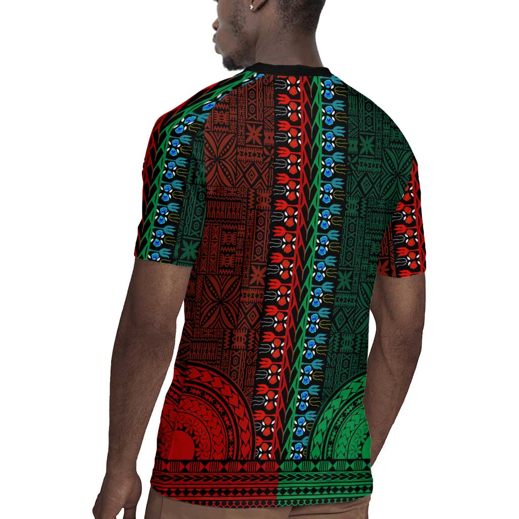 Green-red Dashiki and Tapa Pattern Rugby Jersey Africa-Polynesia Together Culture
