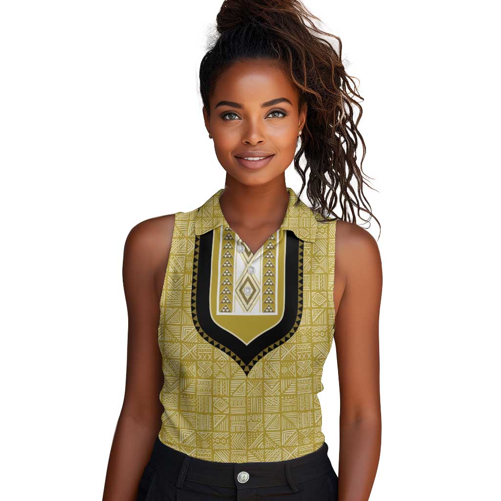 Personalized African Dashiki Women Sleeveless Polo Shirt - Mudcloth Style