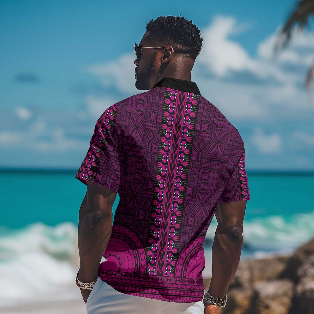 Pink Dashiki and Tapa Pattern Hawaiian Shirt Africa-Polynesia Together Culture
