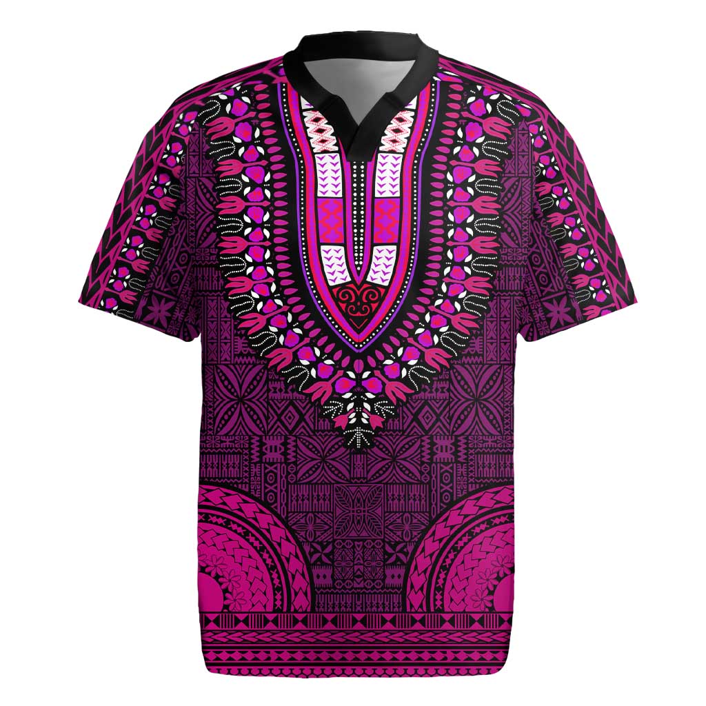 Pink Dashiki and Tapa Pattern Rugby Jersey Africa-Polynesia Together Culture