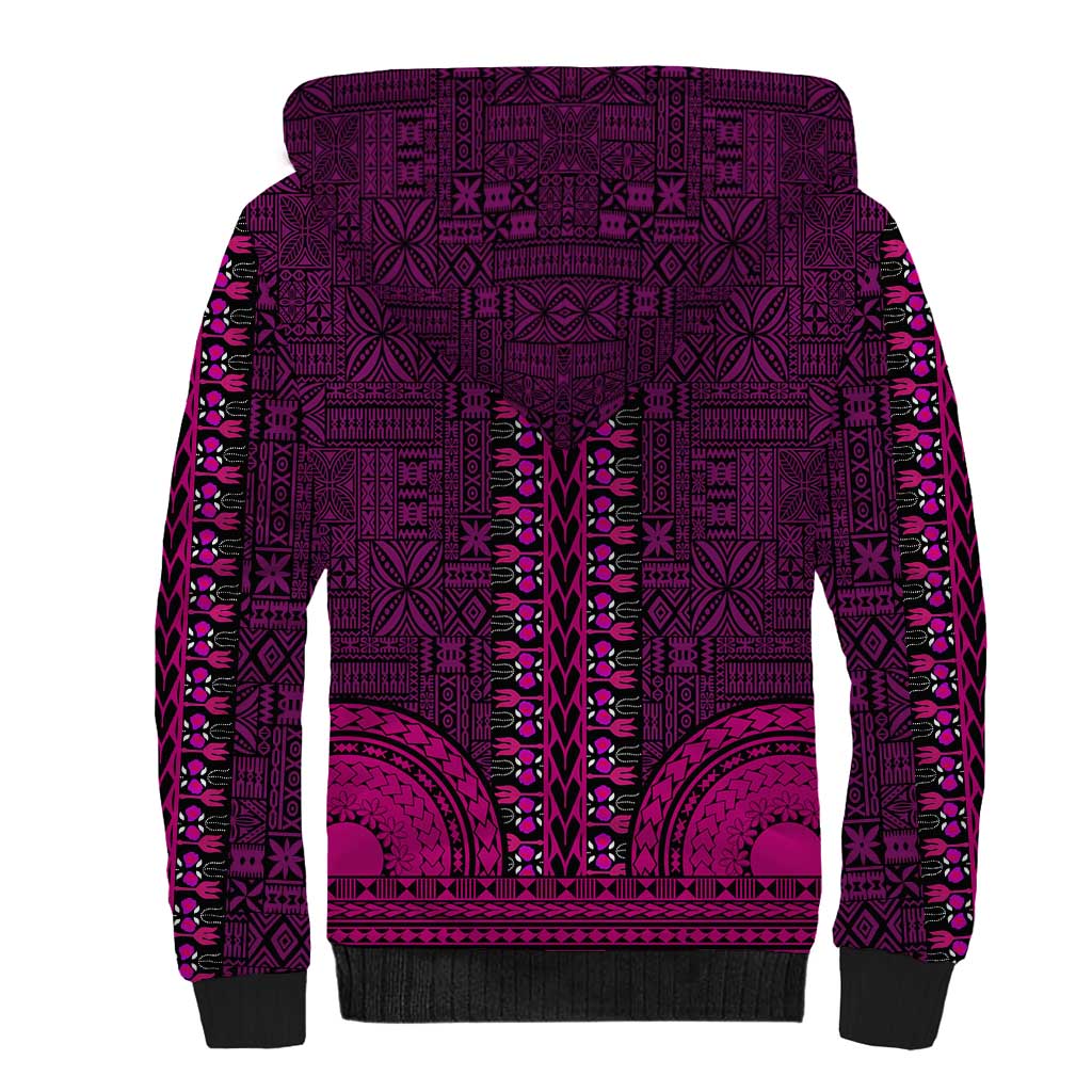 Pink Dashiki and Tapa Pattern Sherpa Hoodie Africa-Polynesia Together Culture