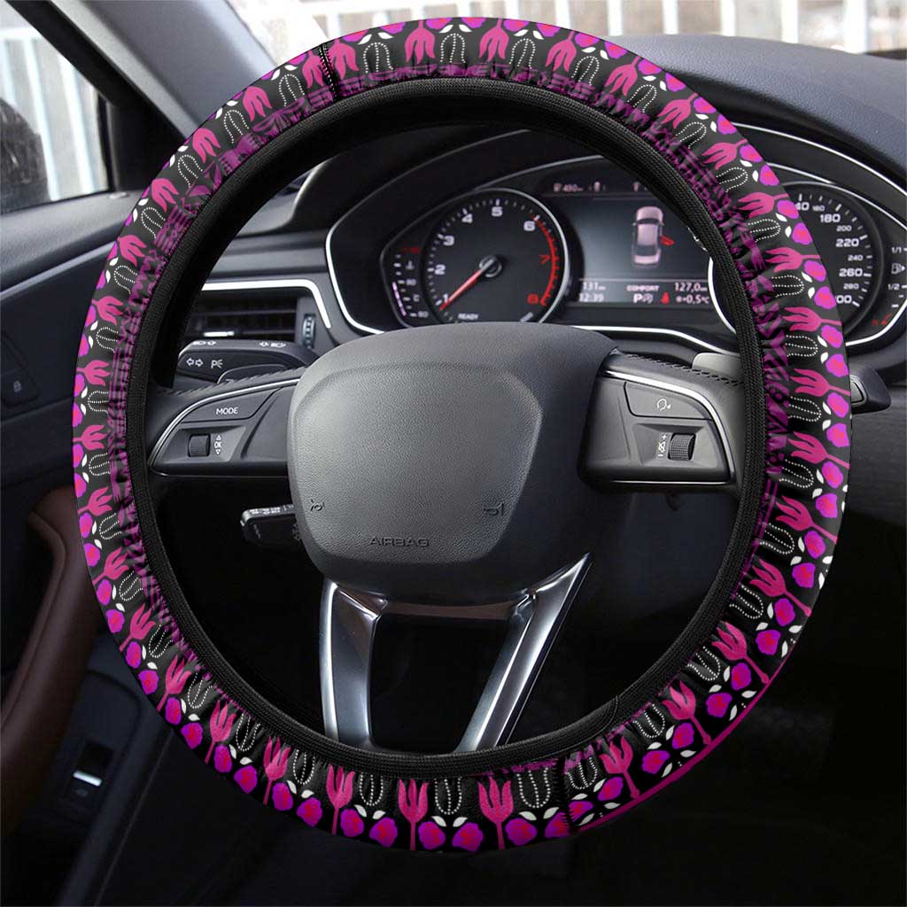 Pink Dashiki and Tapa Pattern Steering Wheel Cover Africa-Polynesia Together Culture
