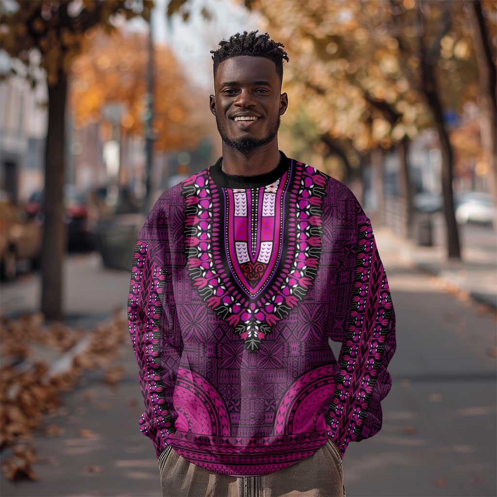 Pink Dashiki and Tapa Pattern Sweatshirt Africa-Polynesia Together Culture