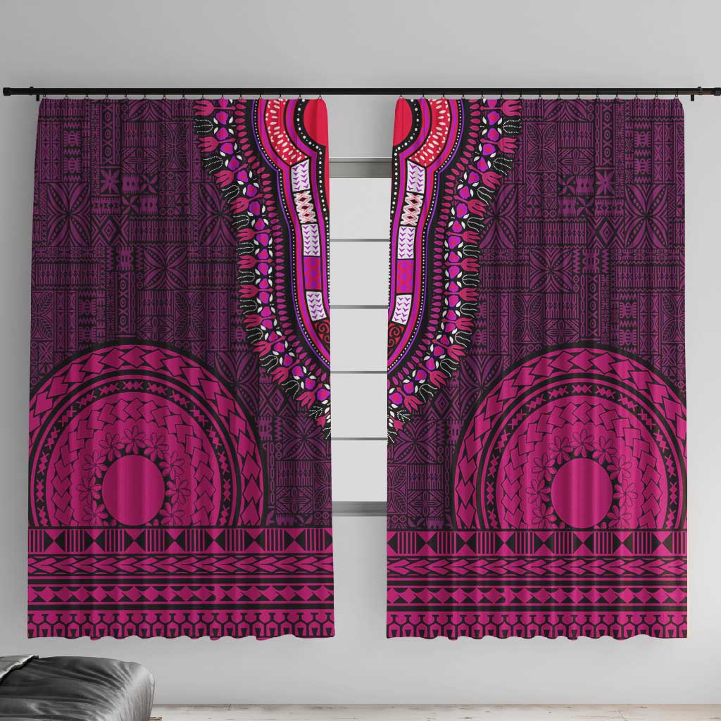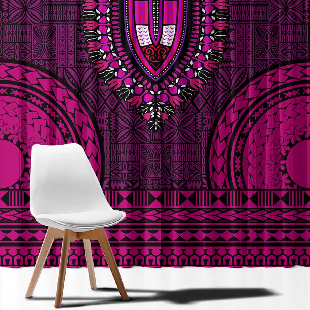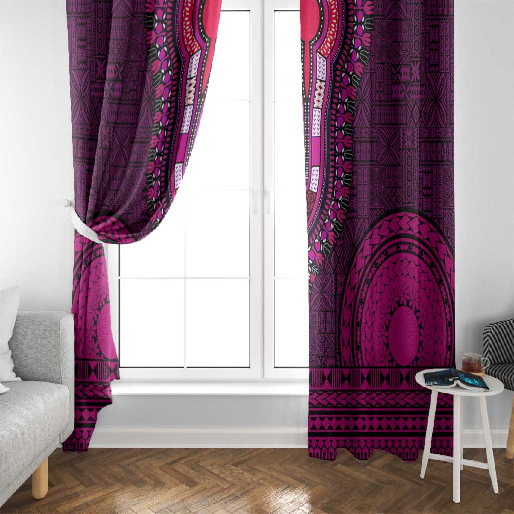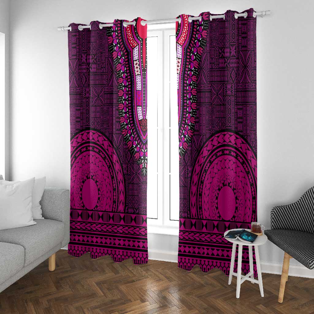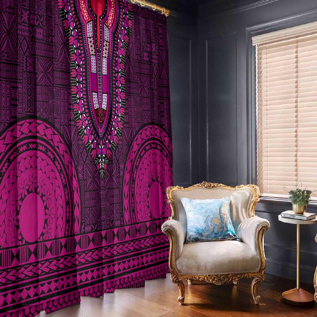 Pink Dashiki and Tapa Pattern Window Curtain Africa-Polynesia Together Culture