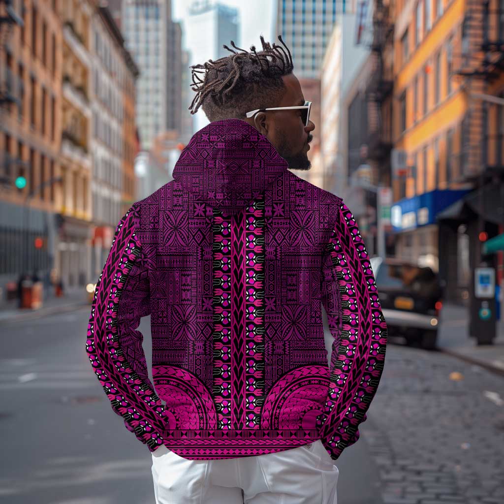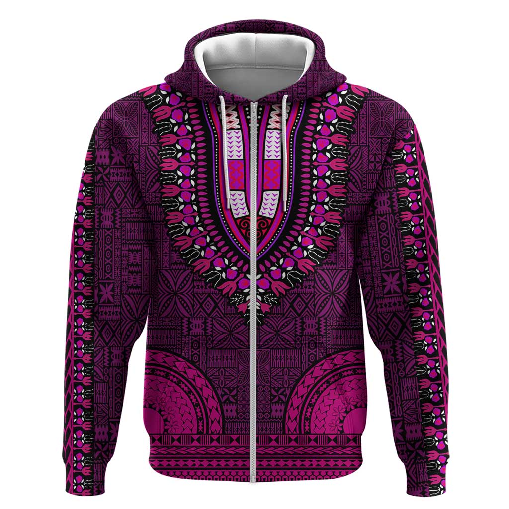 Pink Dashiki and Tapa Pattern Zip Hoodie Africa-Polynesia Together Culture