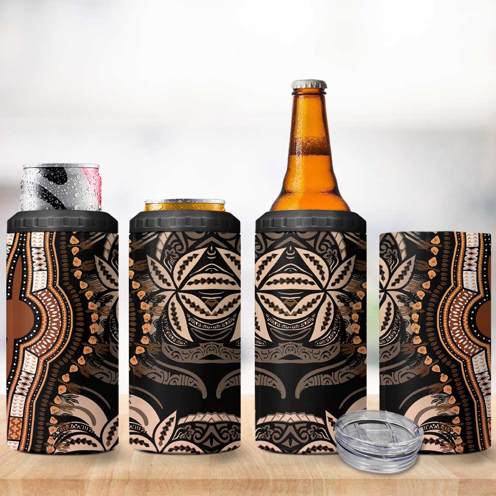 Polynesia Mixed African Dashiki 4 in 1 Can Cooler Tumbler Afro-pacific Culture - Gold