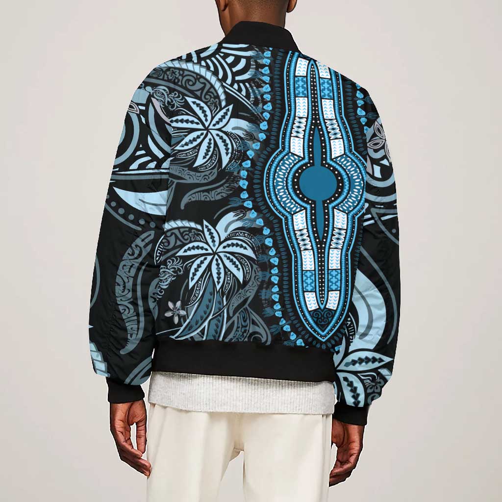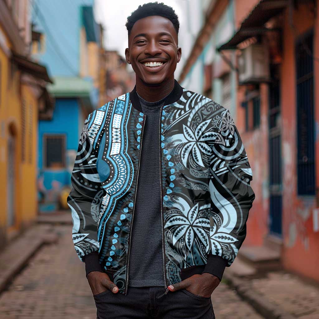 Polynesia Mixed African Dashiki Bomber Jacket Afro-pacific Culture - Blue