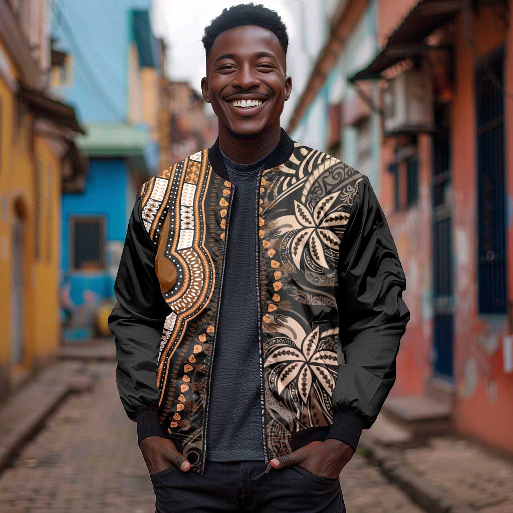 Polynesia Mixed African Dashiki Bomber Jacket Afro-pacific Culture - Gold LT9
