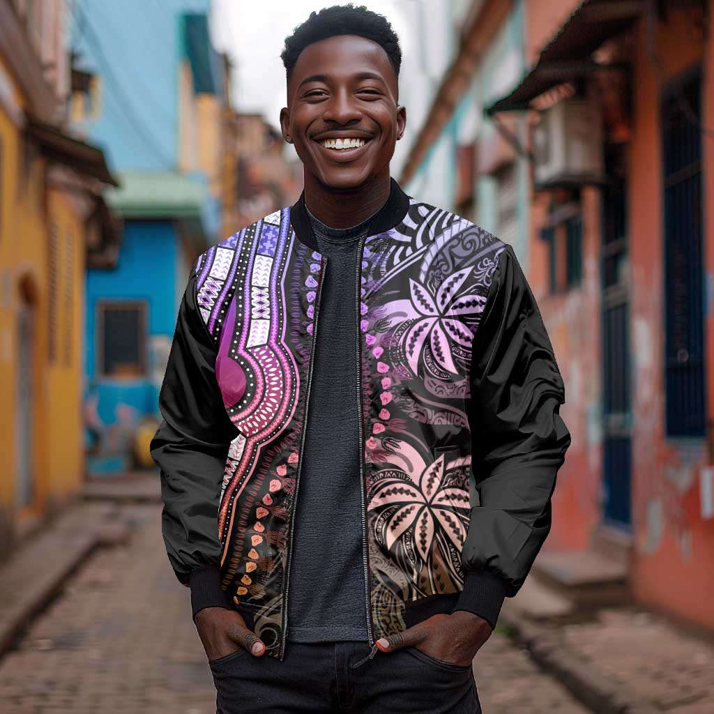 Polynesia Mixed African Dashiki Bomber Jacket Afro-pacific Culture - Pastel