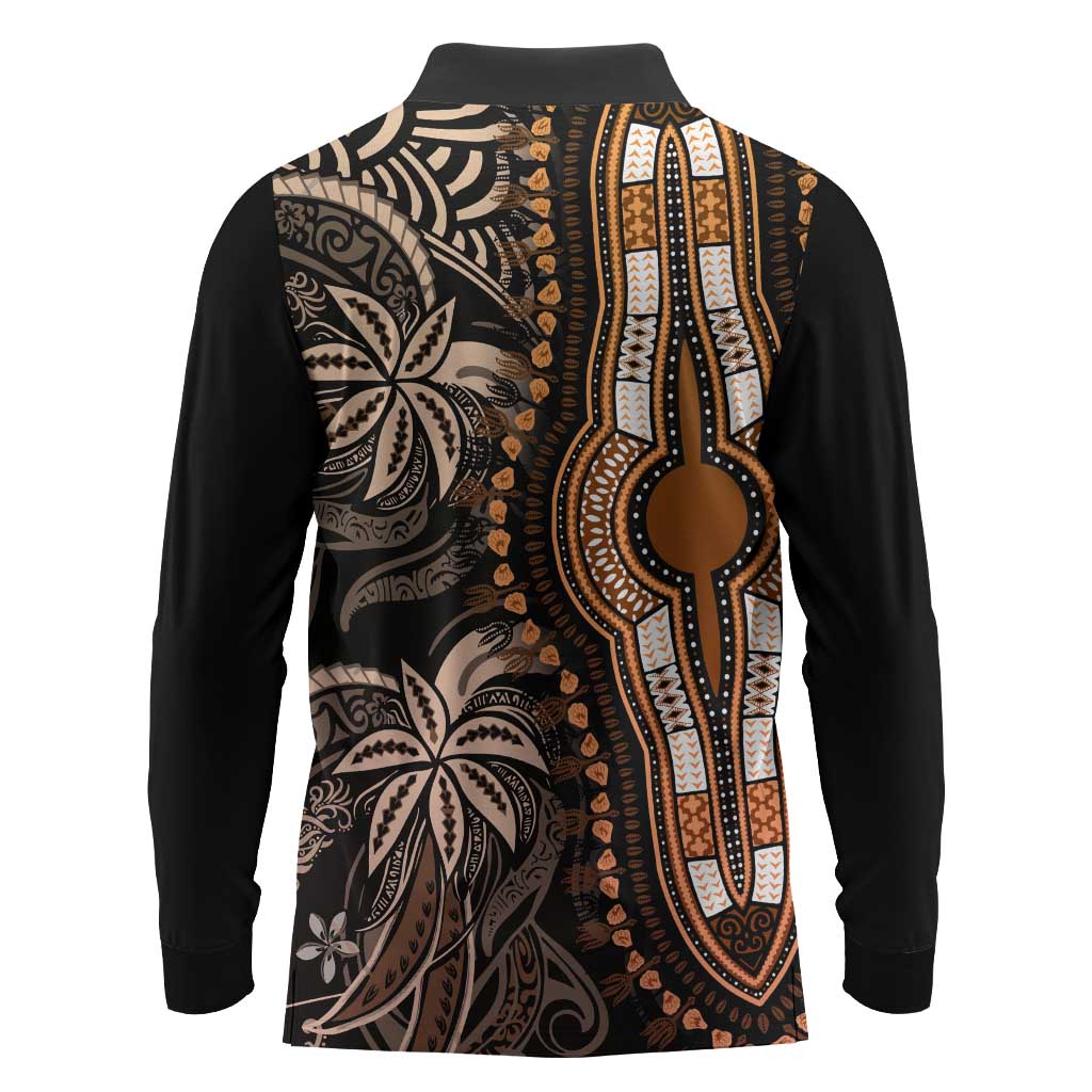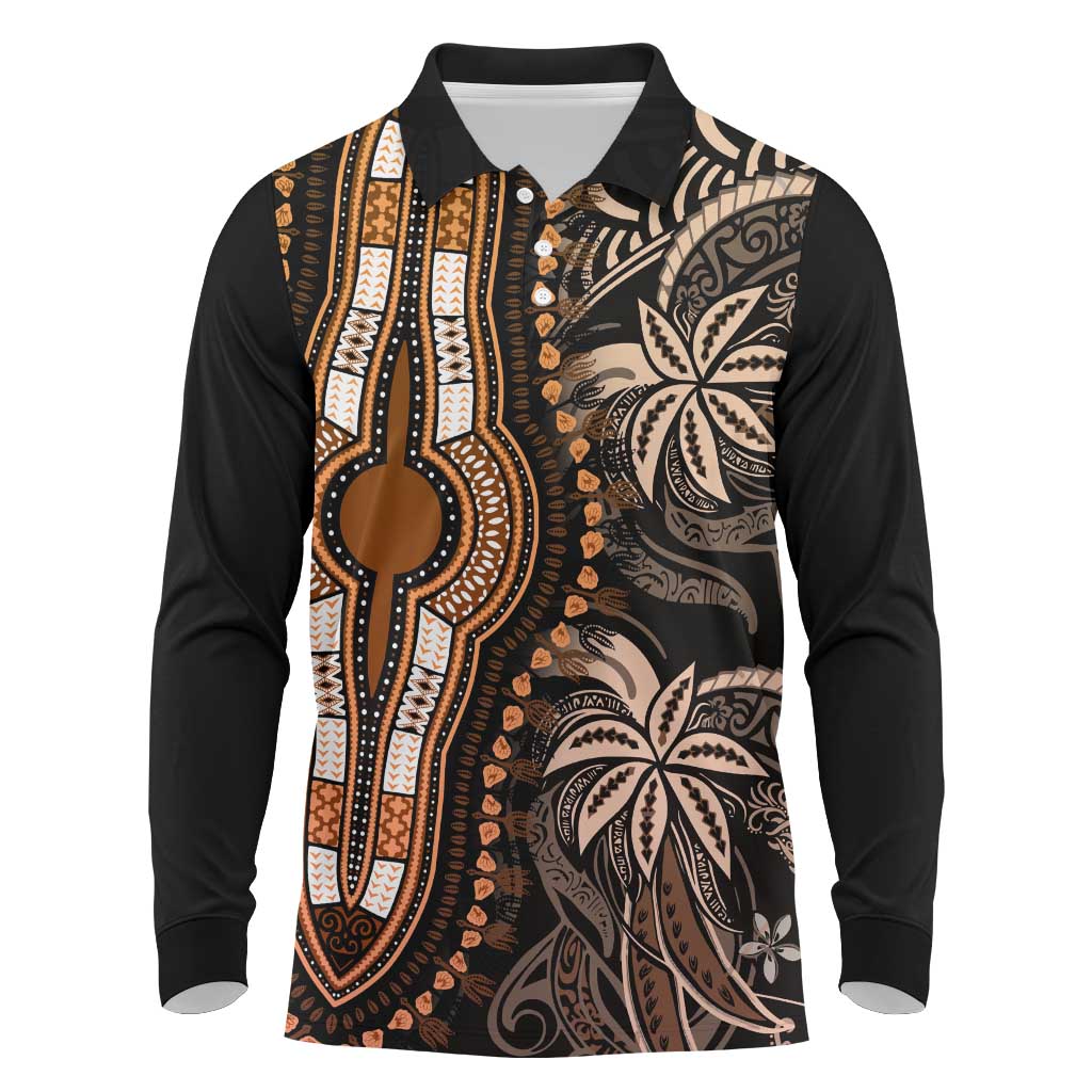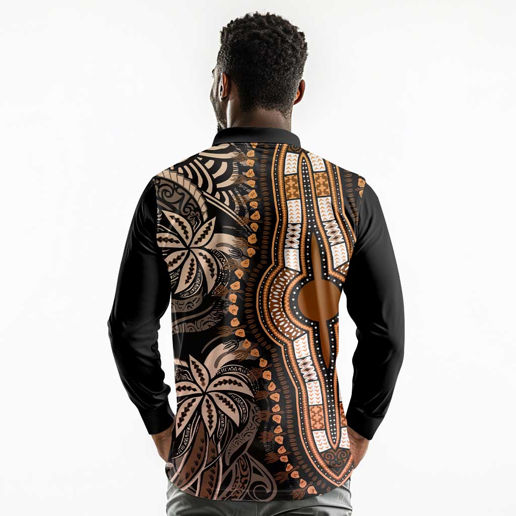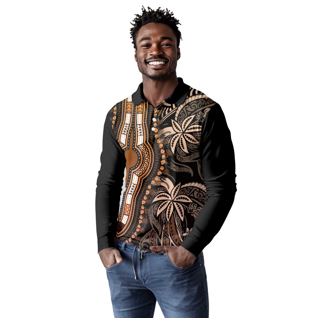 Polynesia Mixed African Dashiki Long Sleeve Polo Shirt Afro-pacific Culture - Gold