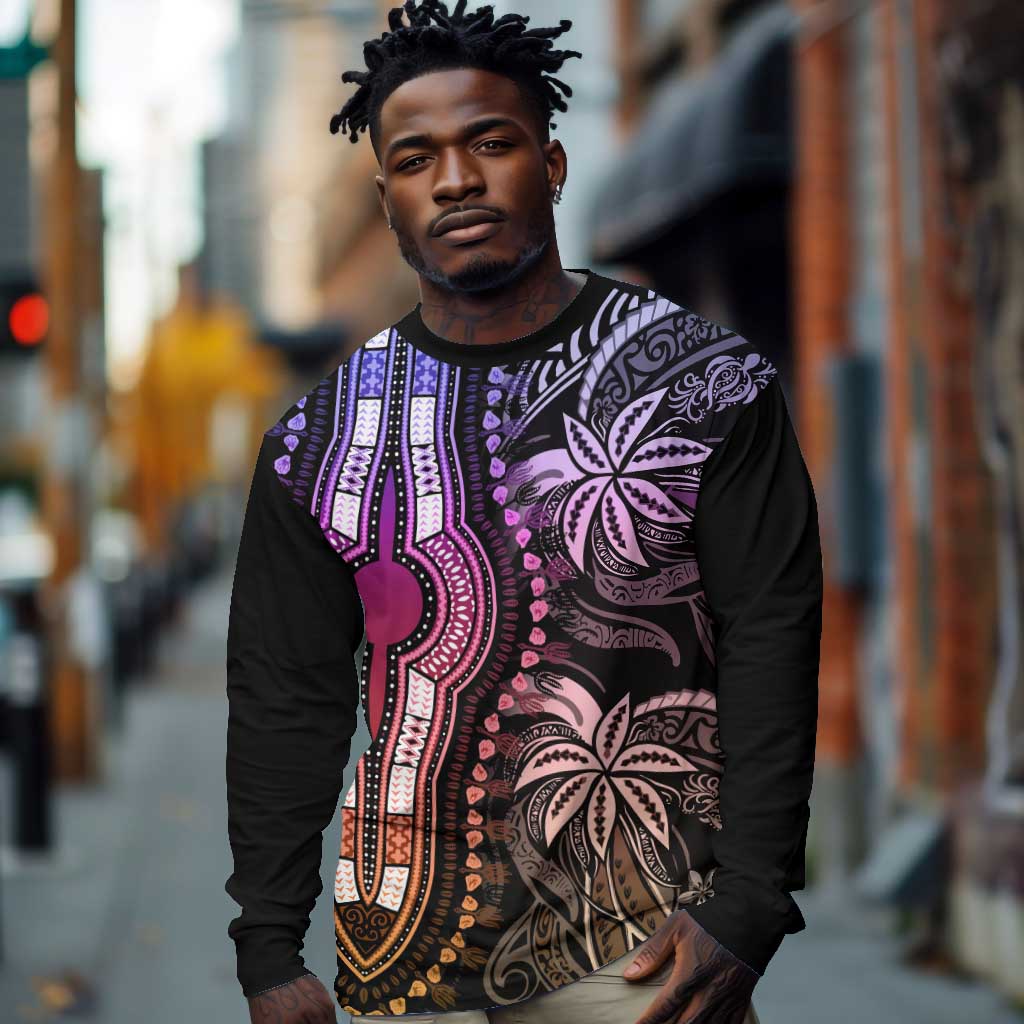 Polynesia Mixed African Dashiki Long Sleeve Shirt Afro-pacific Culture - Pastel