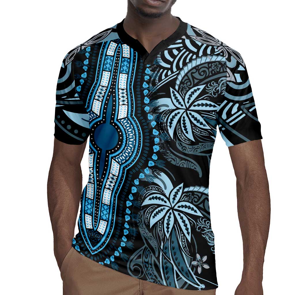 Polynesia Mixed African Dashiki Rugby Jersey Afro-pacific Culture - Blue