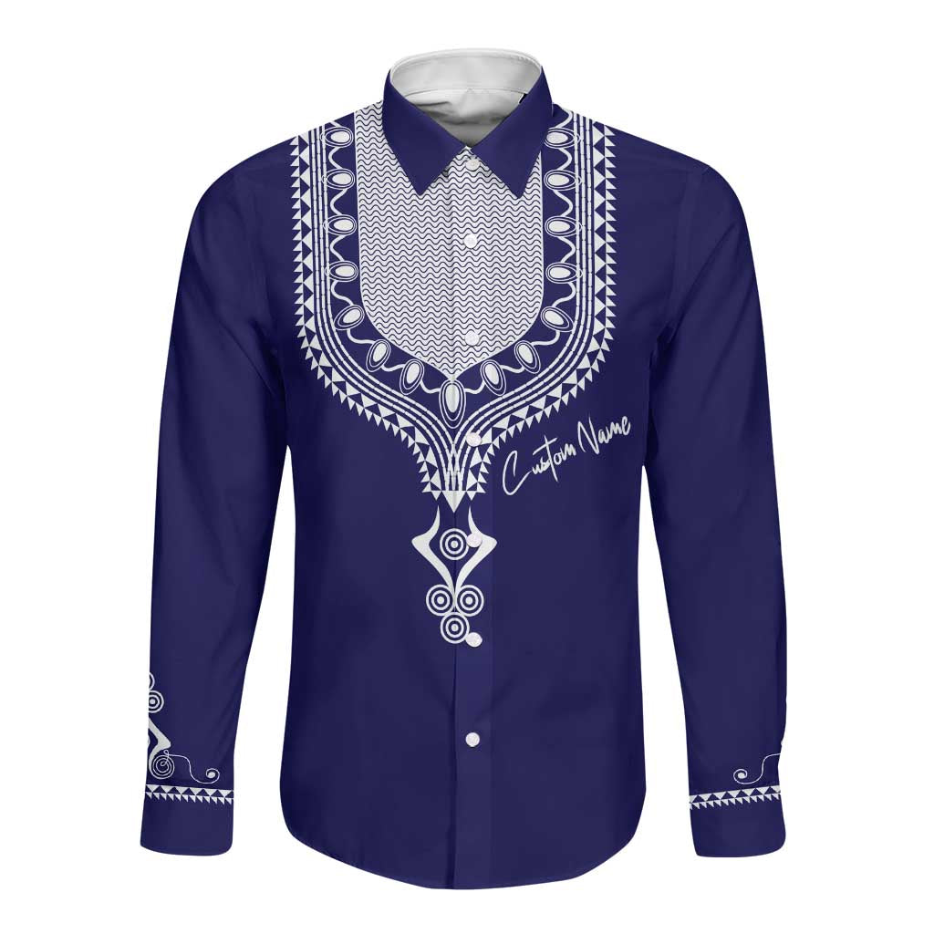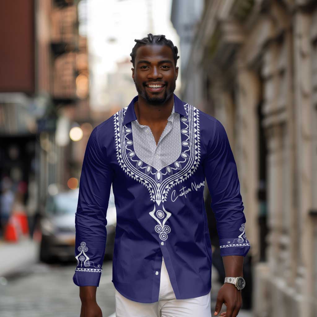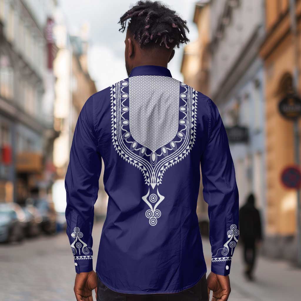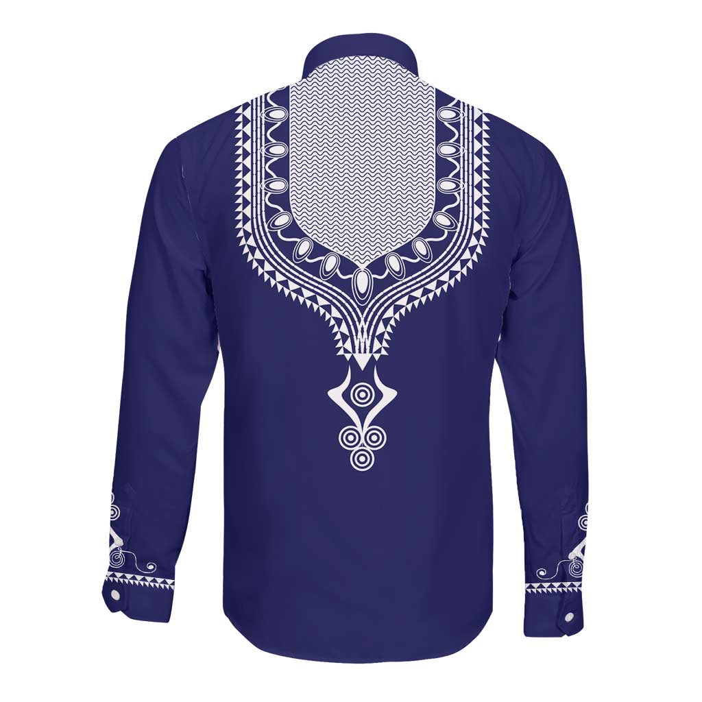 Printed Dashiki African Long Sleeve Button Shirt Blue