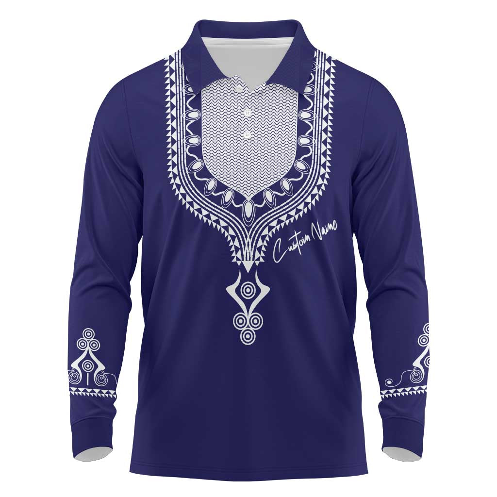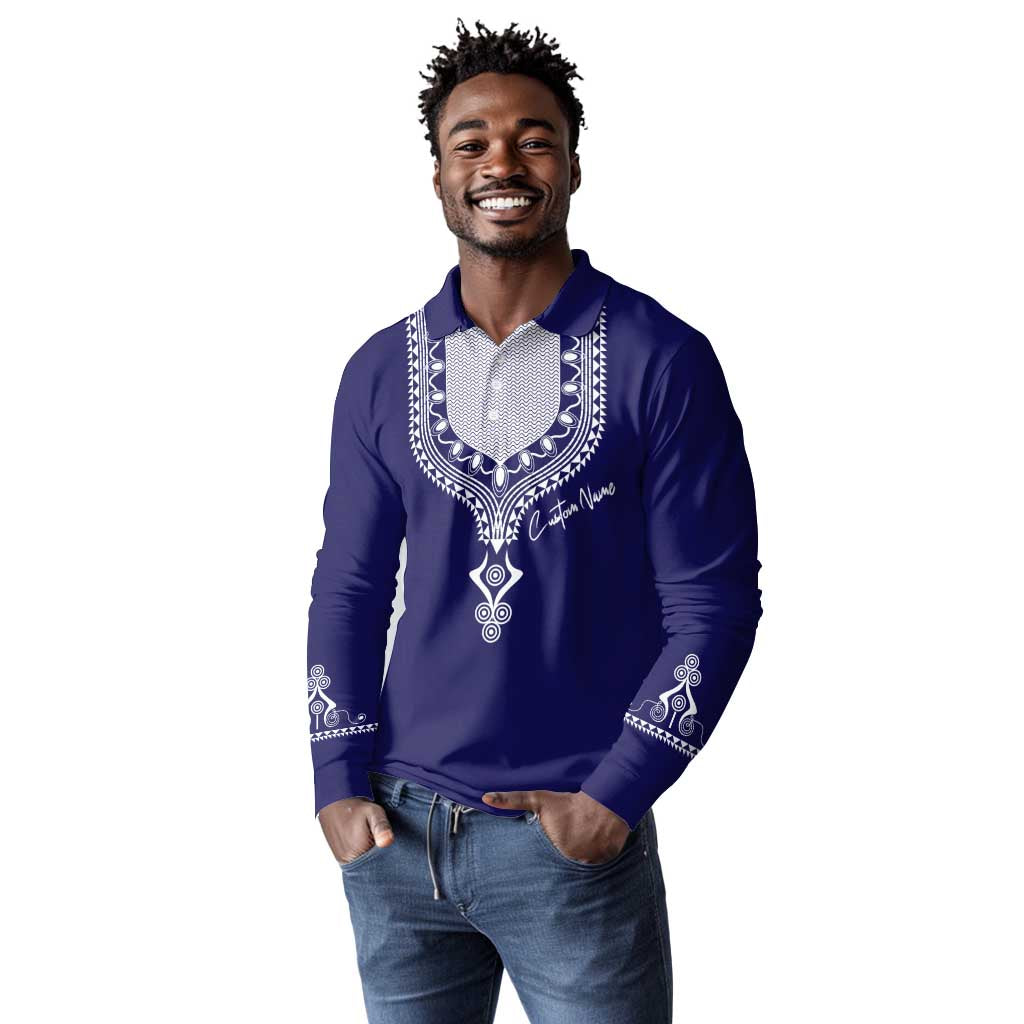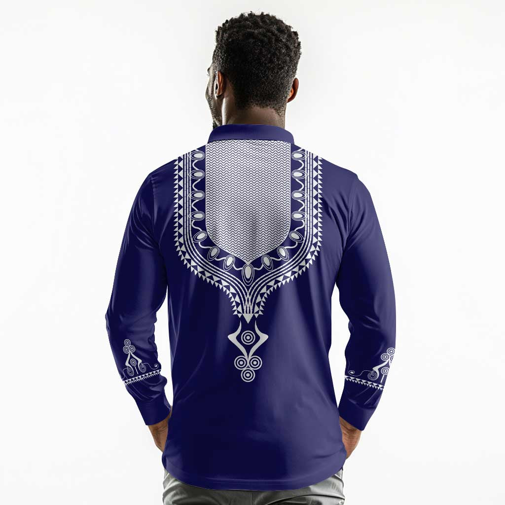 Printed Dashiki African Long Sleeve Polo Shirt Blue