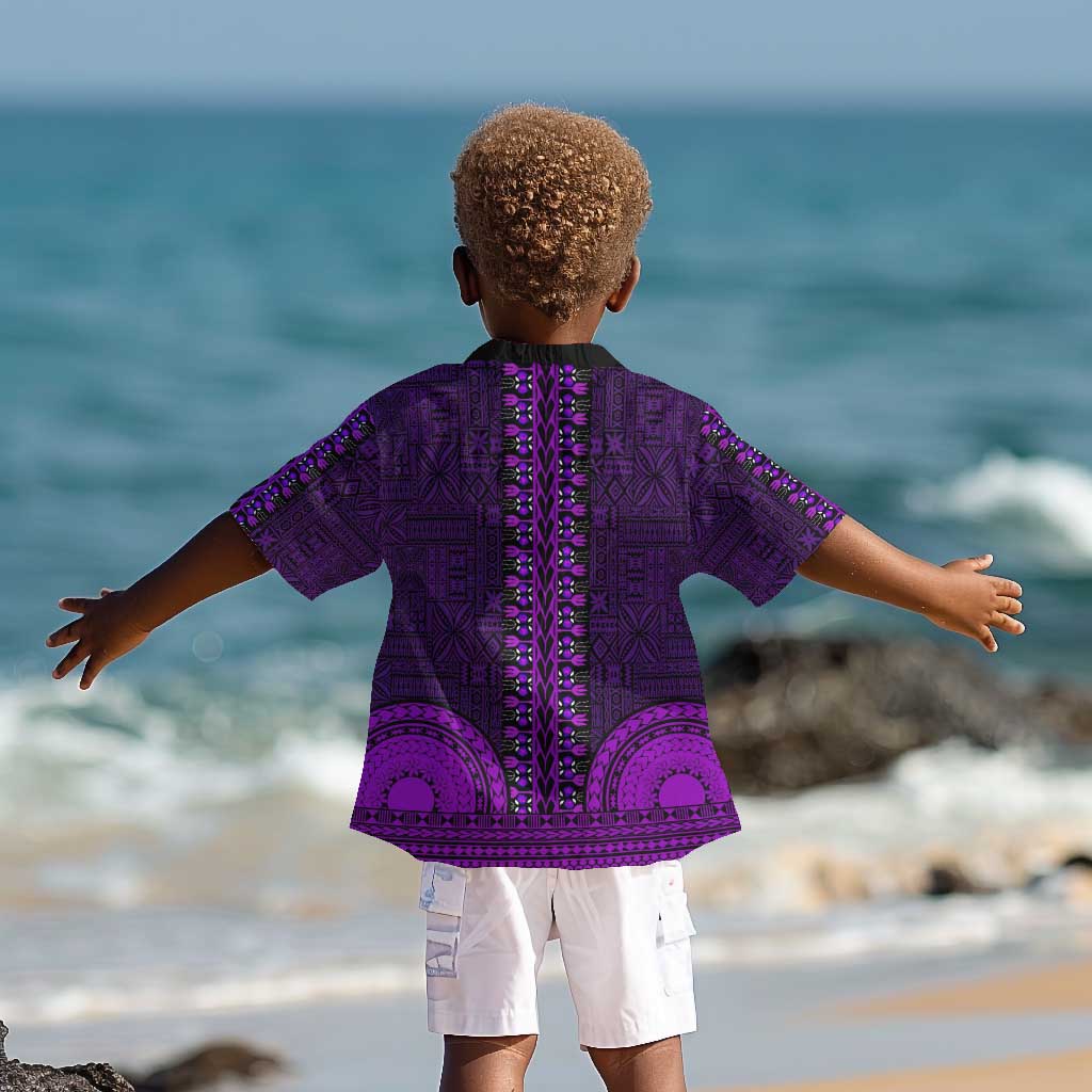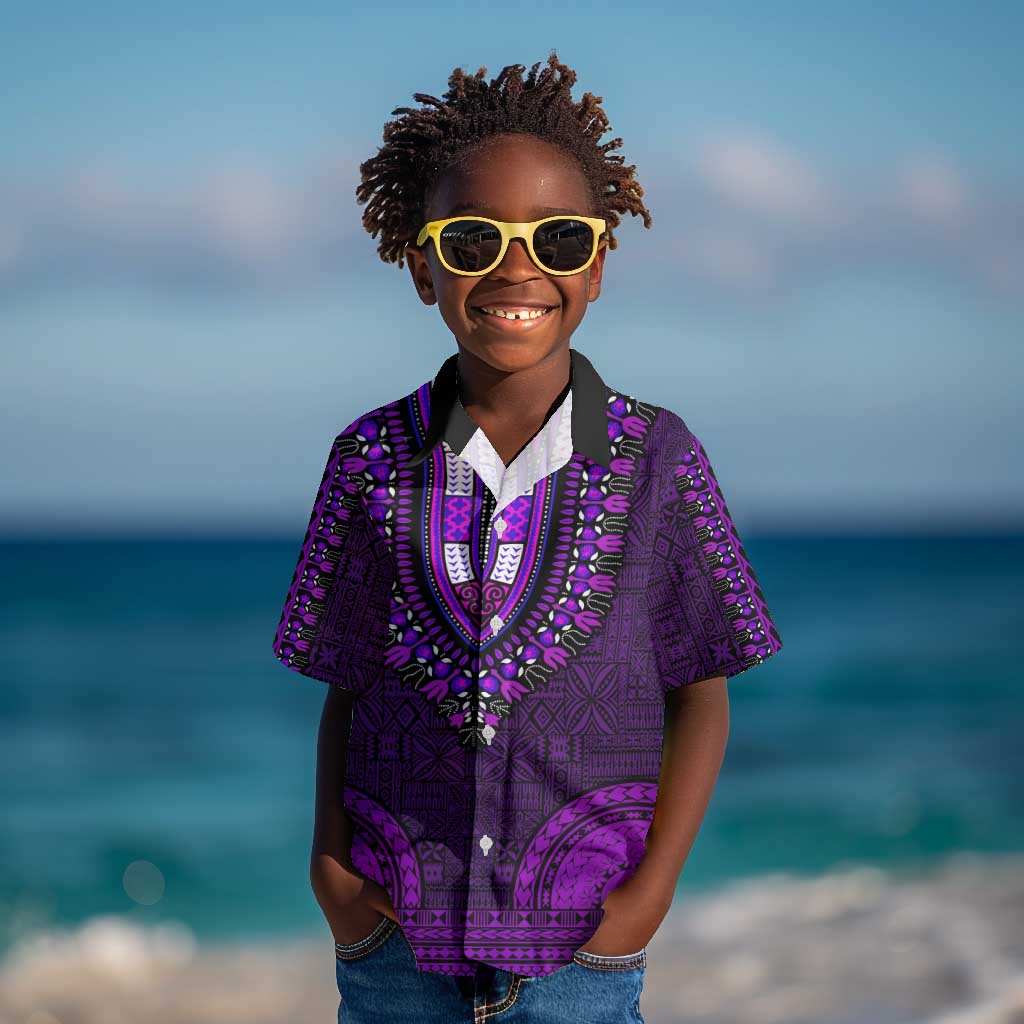 Purple Dashiki and Tapa Pattern Kid Hawaiian Shirt Africa-Polynesia Together Culture