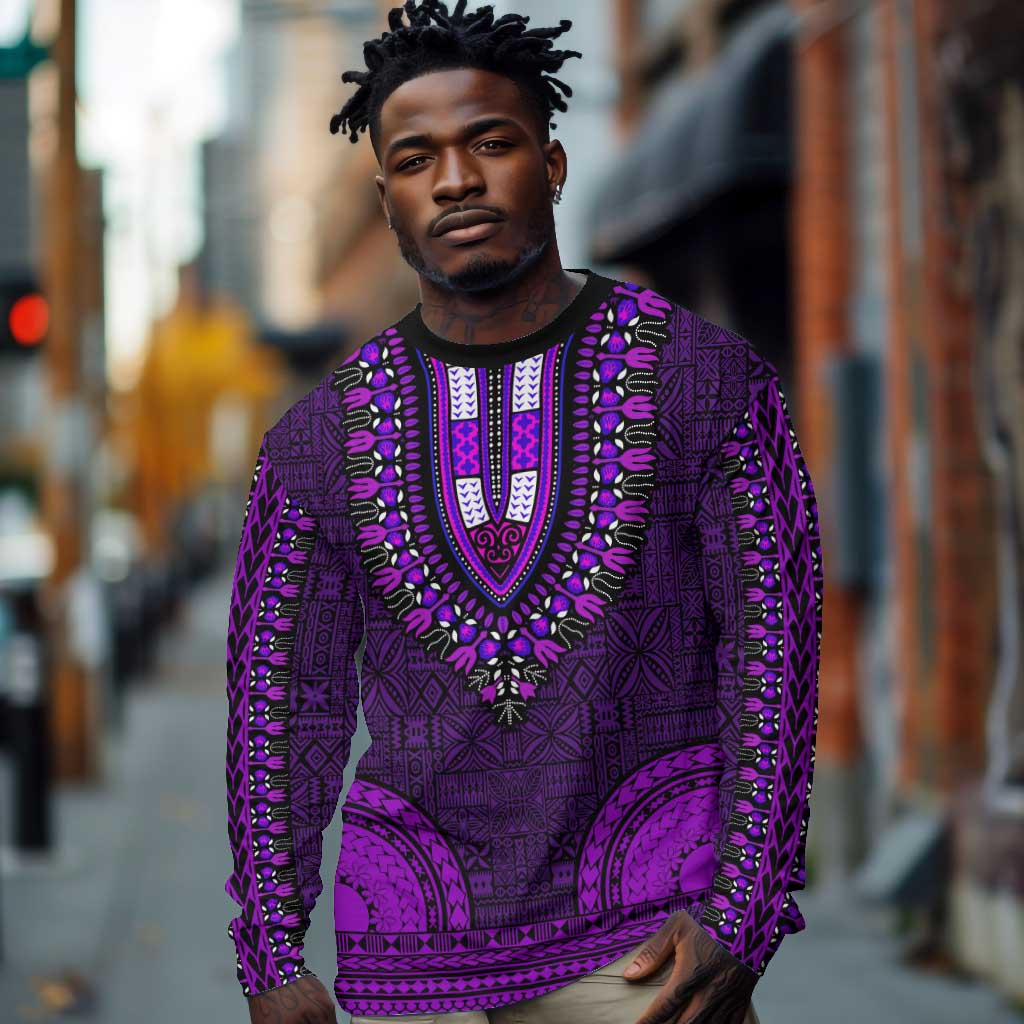 Purple Dashiki and Tapa Pattern Men Tank Top Africa-Polynesia Together Culture