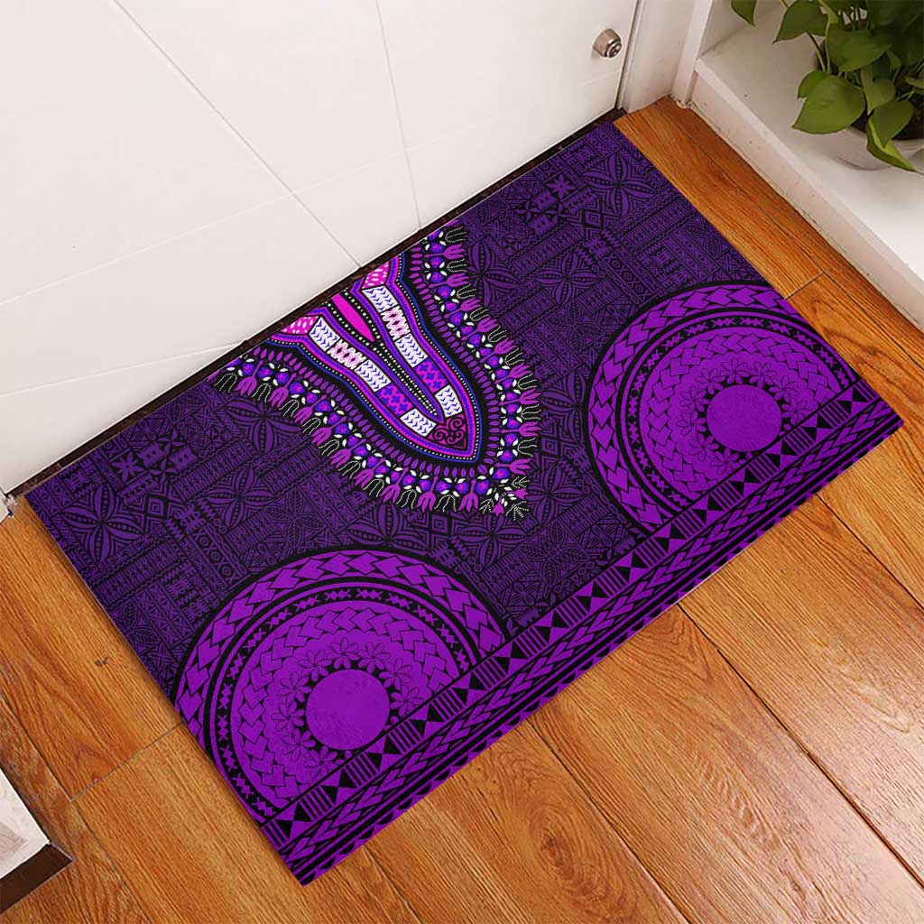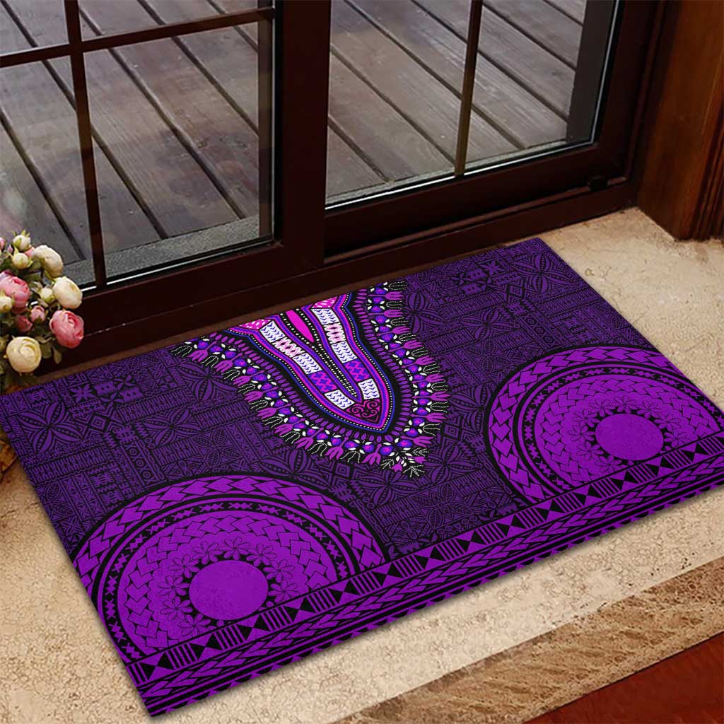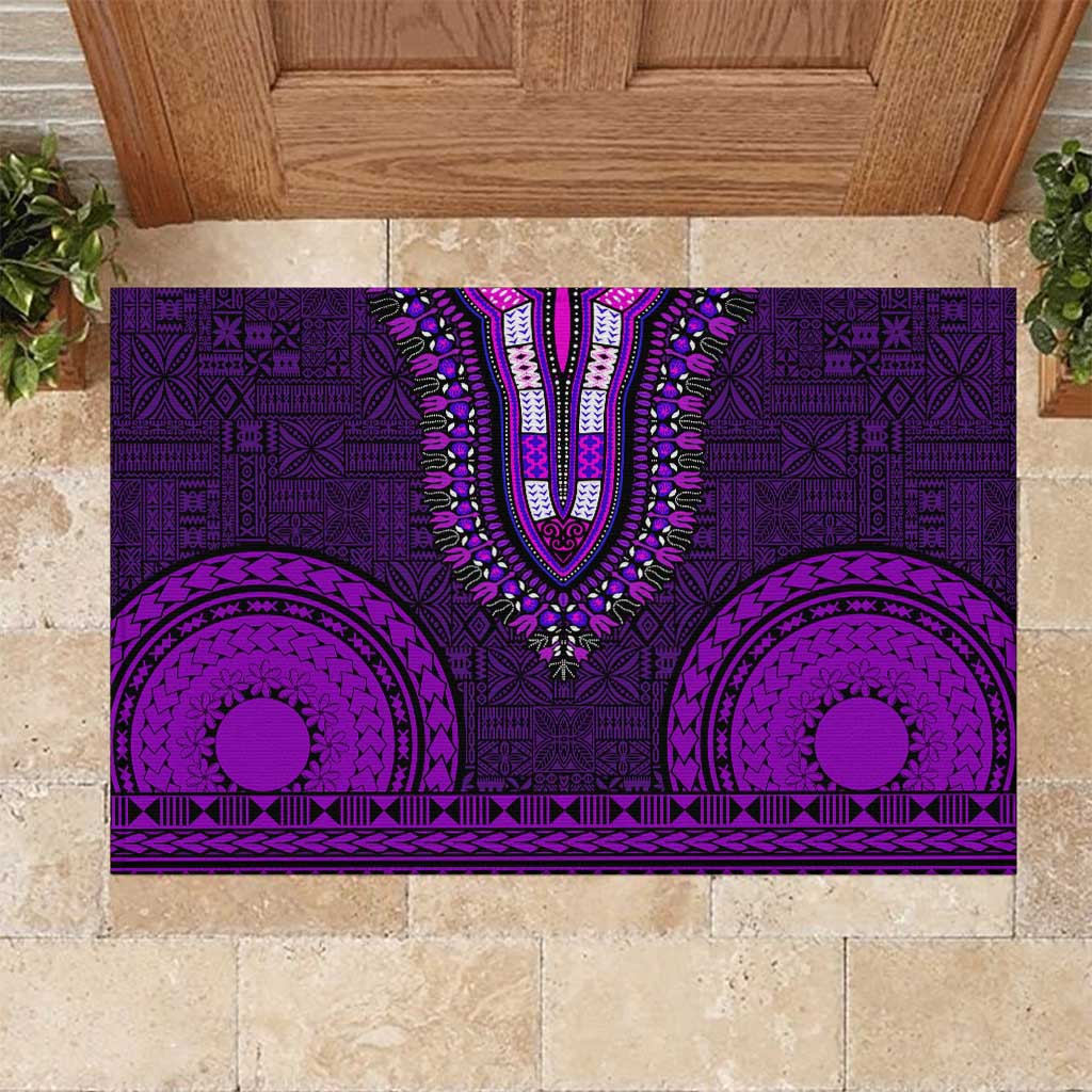 Purple Dashiki and Tapa Pattern Rubber Doormat Africa-Polynesia Together Culture