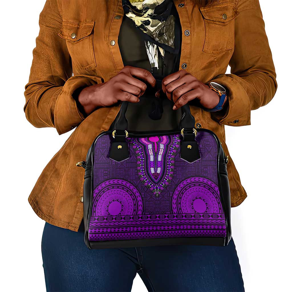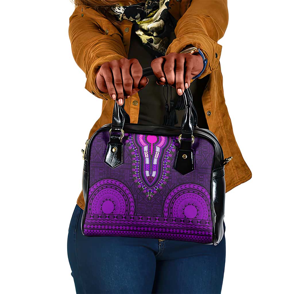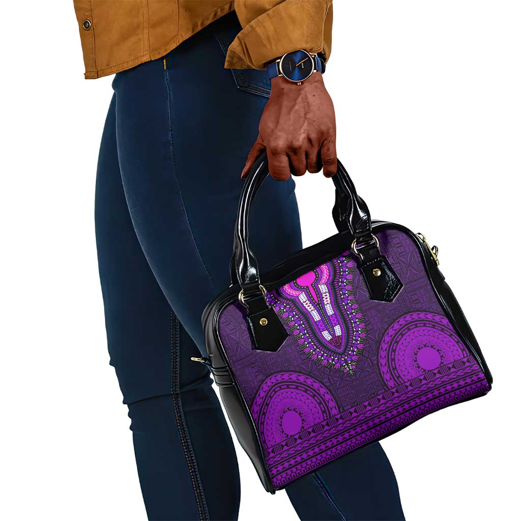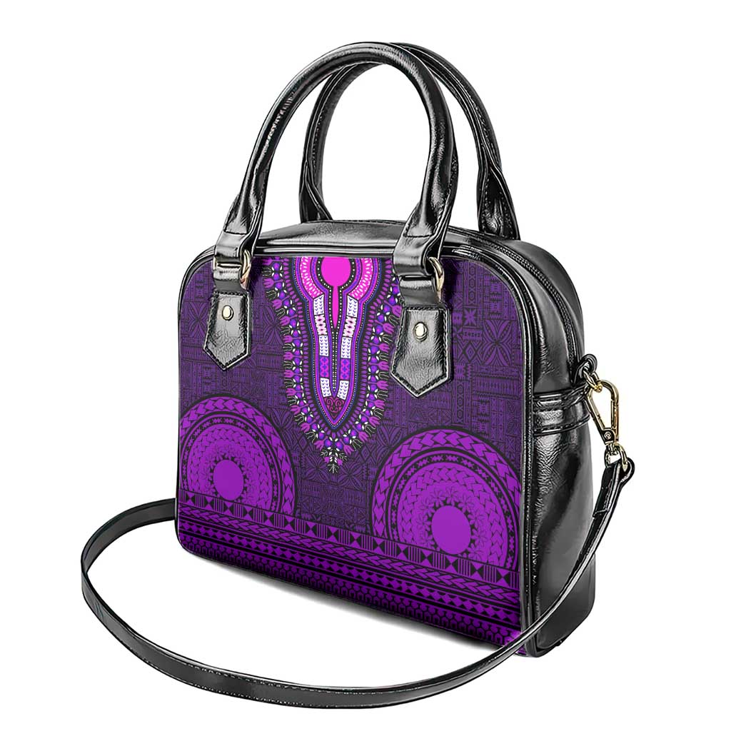 Purple Dashiki and Tapa Pattern Shoulder Handbag Africa-Polynesia Together Culture