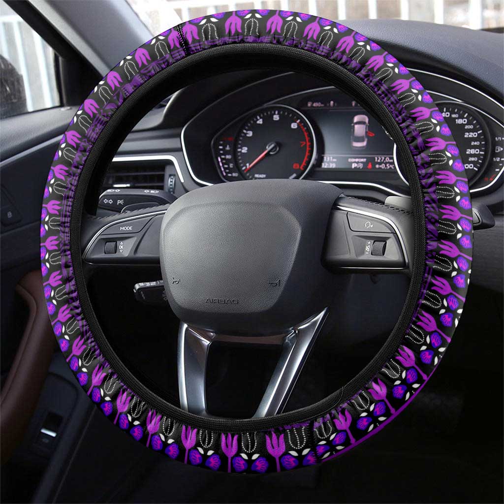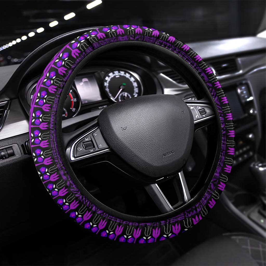 Purple Dashiki and Tapa Pattern Steering Wheel Cover Africa-Polynesia Together Culture