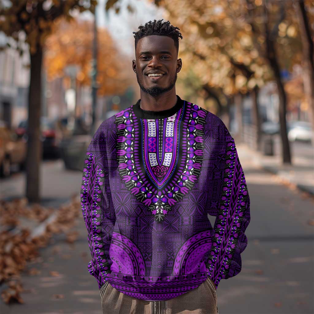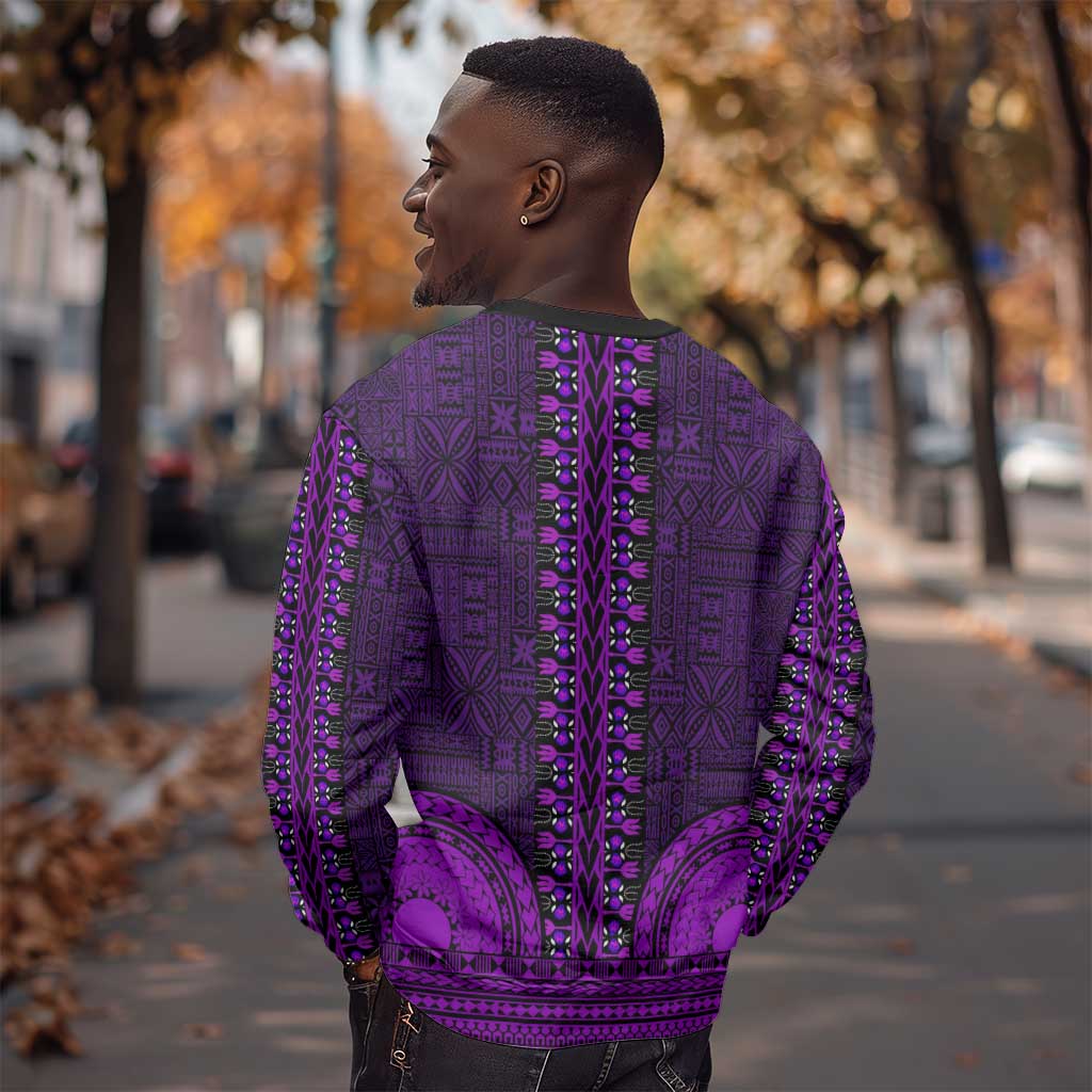 Purple Dashiki and Tapa Pattern Sweatshirt Africa-Polynesia Together Culture