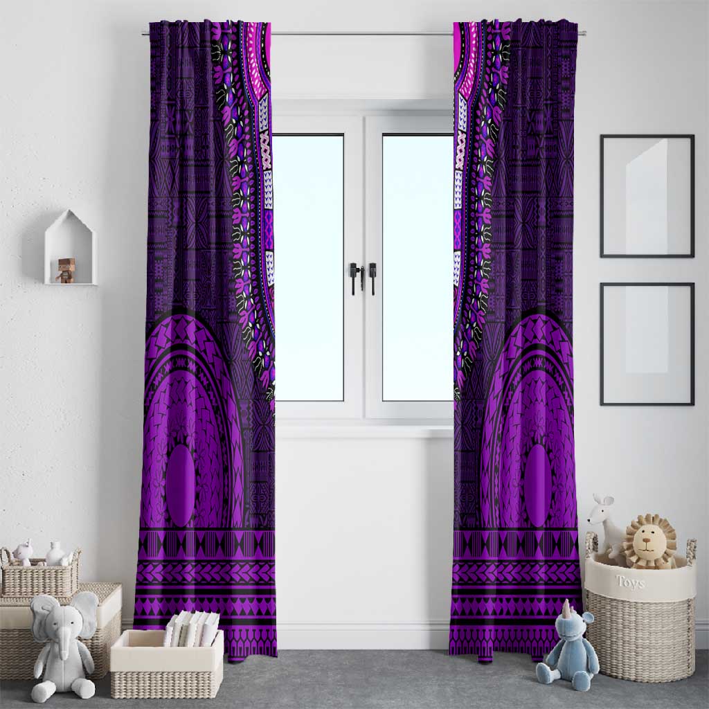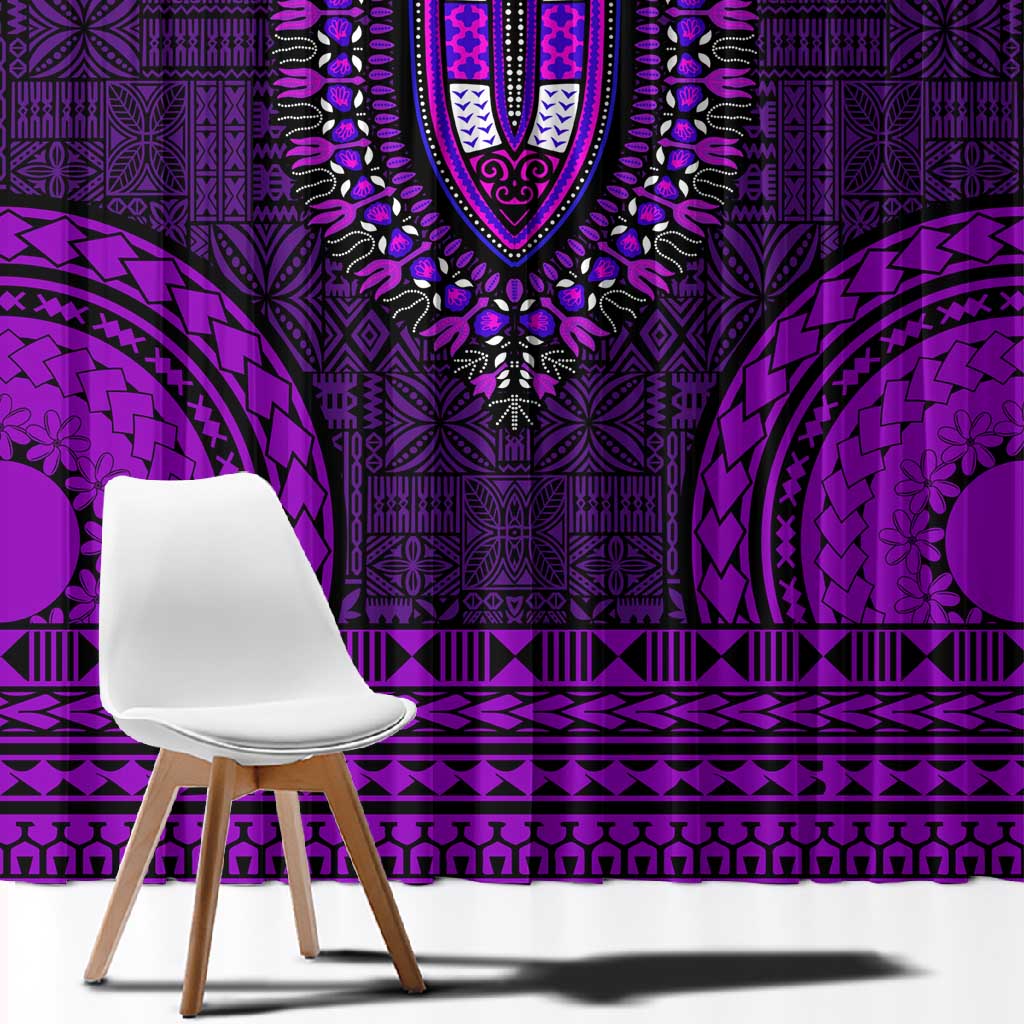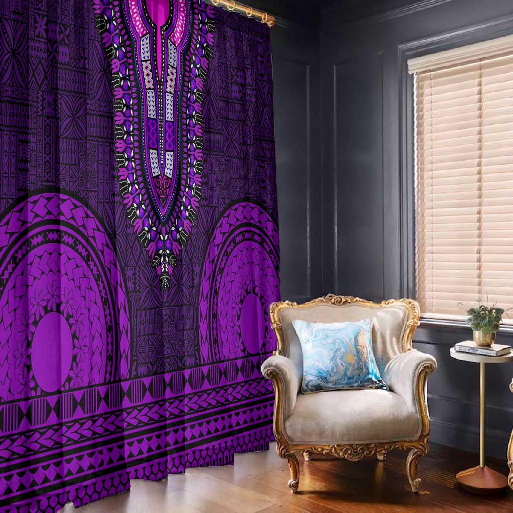 Purple Dashiki and Tapa Pattern Window Curtain Africa-Polynesia Together Culture