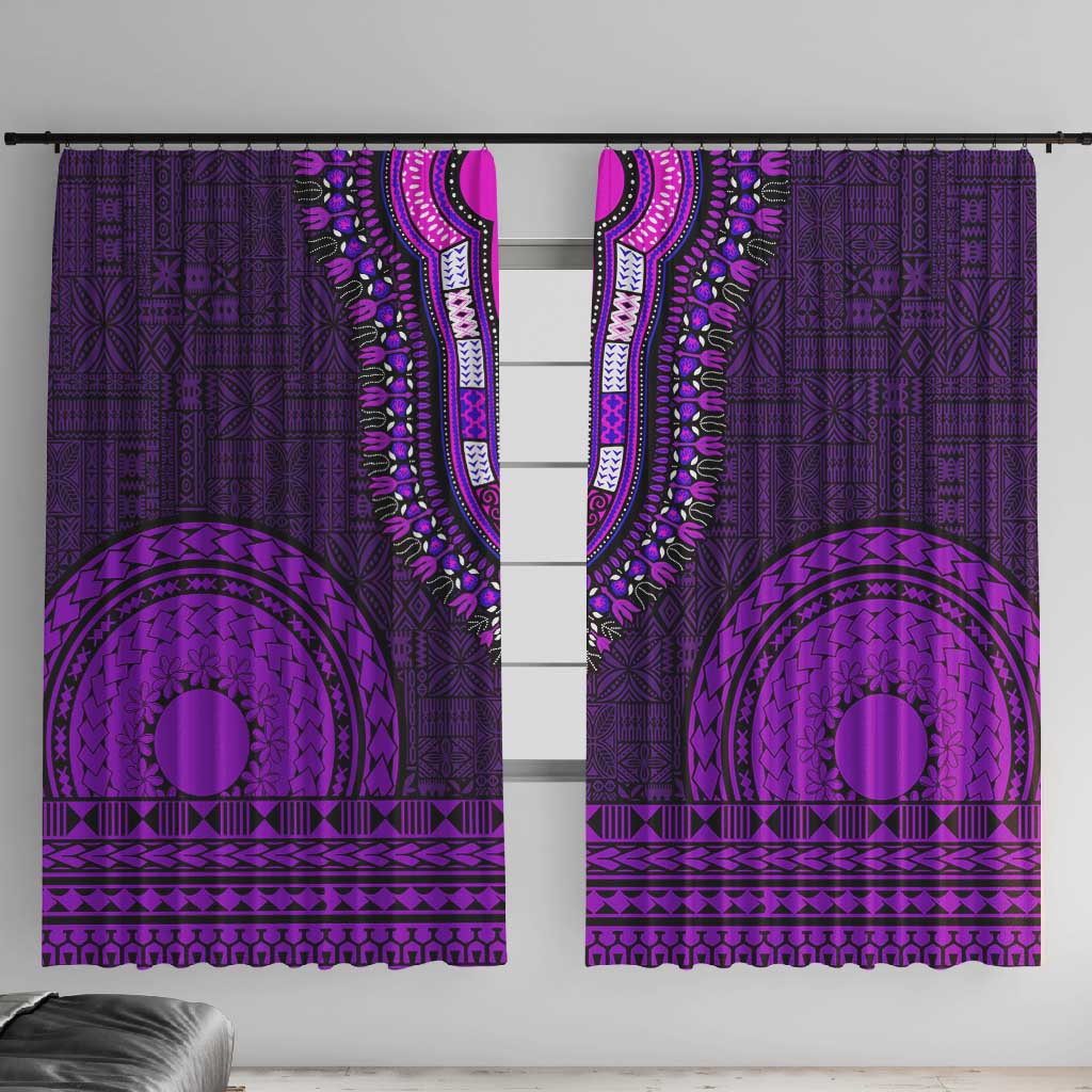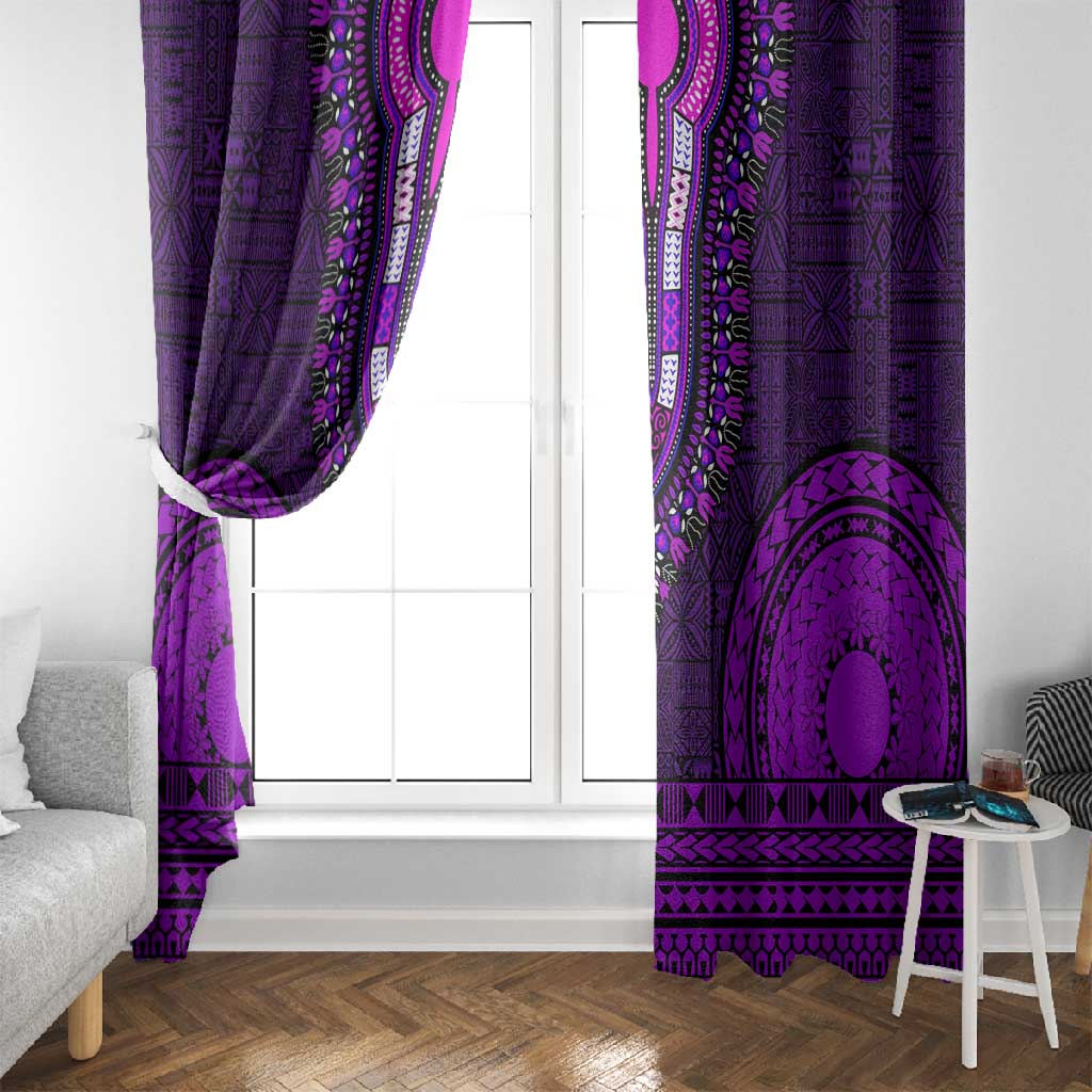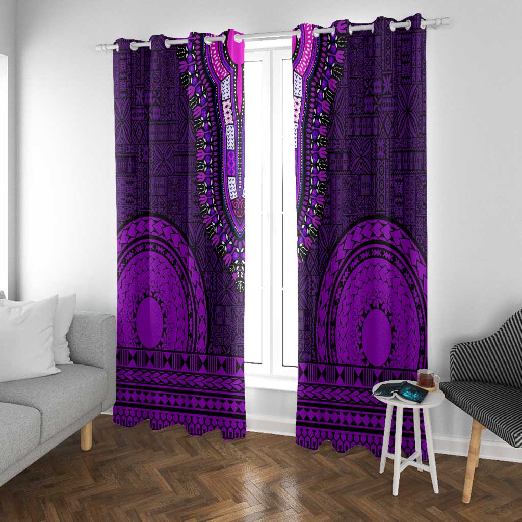 Purple Dashiki and Tapa Pattern Window Curtain Africa-Polynesia Together Culture