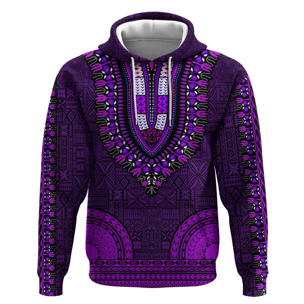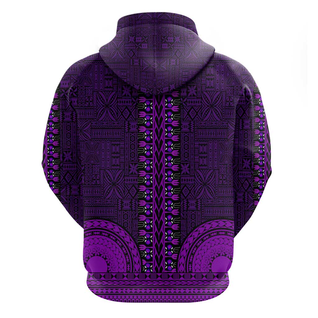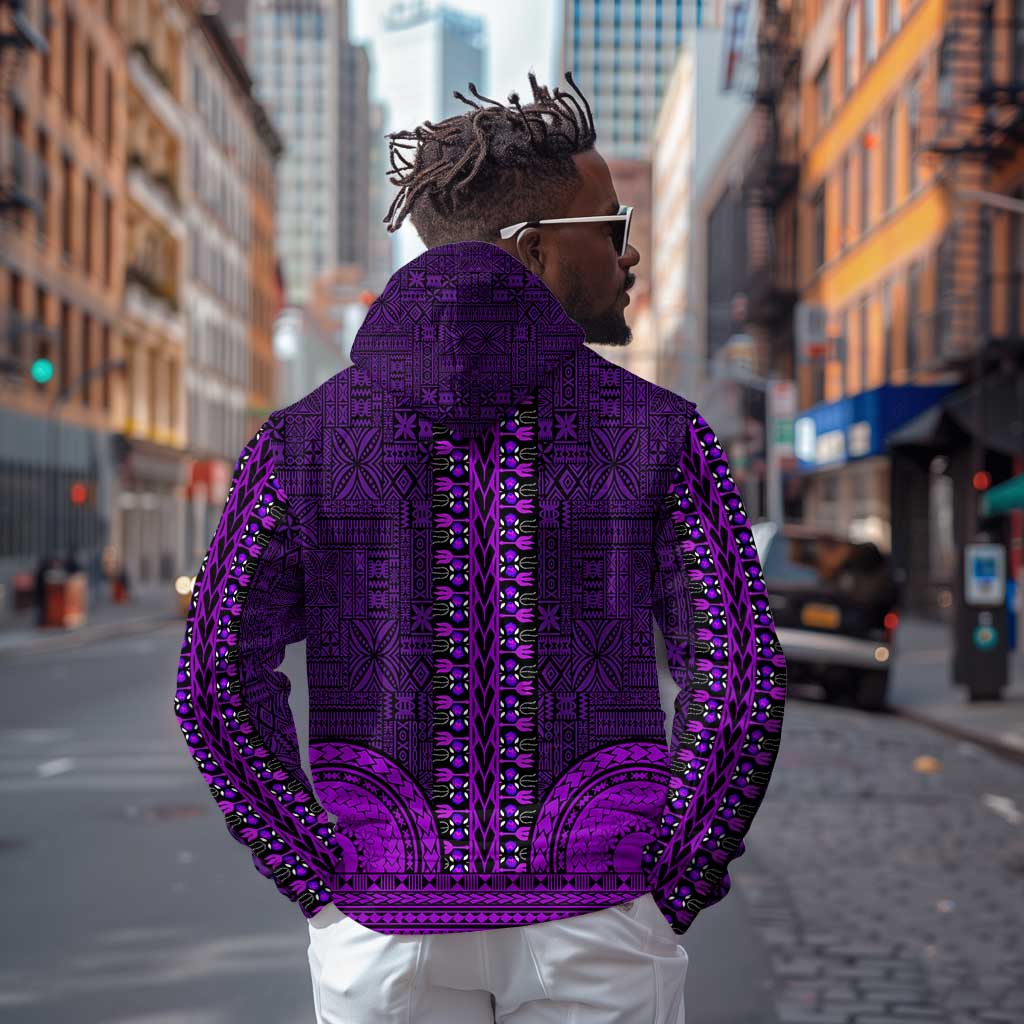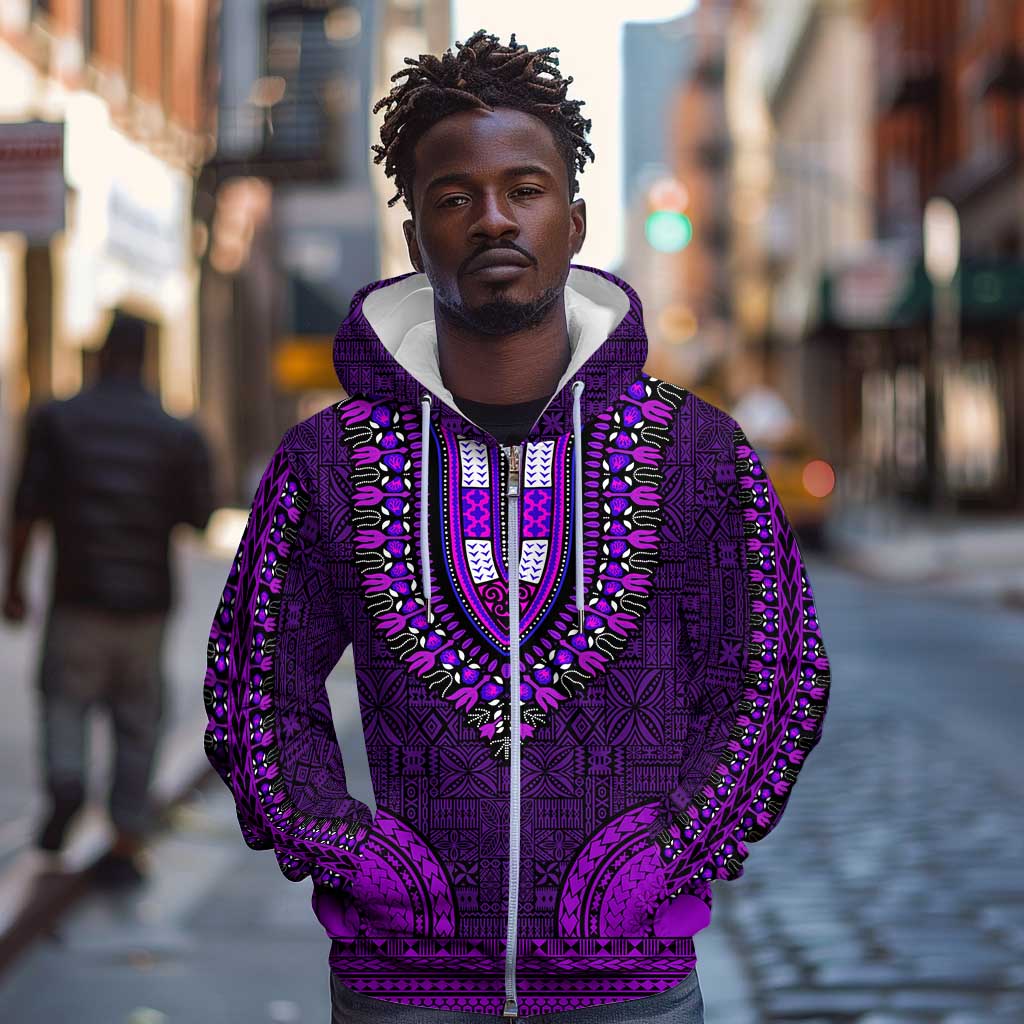 Purple Dashiki and Tapa Pattern Zip Hoodie Africa-Polynesia Together Culture